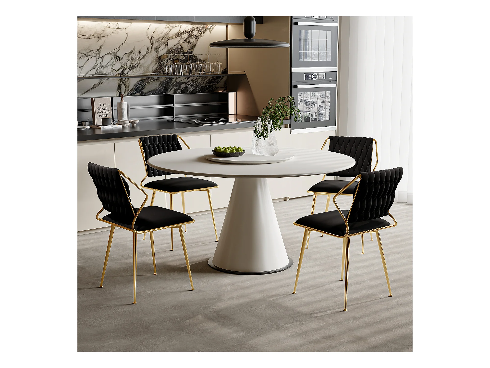 Set van 2 fluwelen eetkamerstoelen met geweven rugleuning en gouden metalen poten, woonkamerstoelen, voor eetkamer, woonkamer, keuken, kaptafel (zwart)