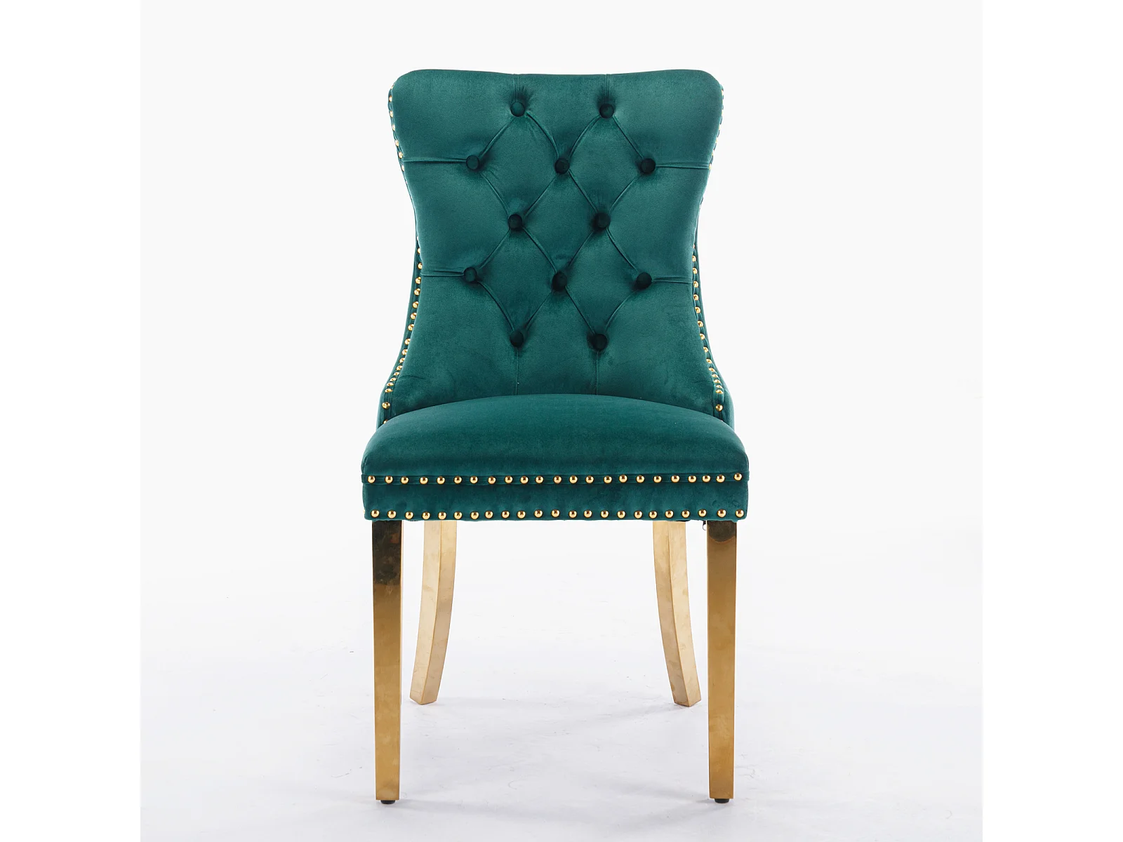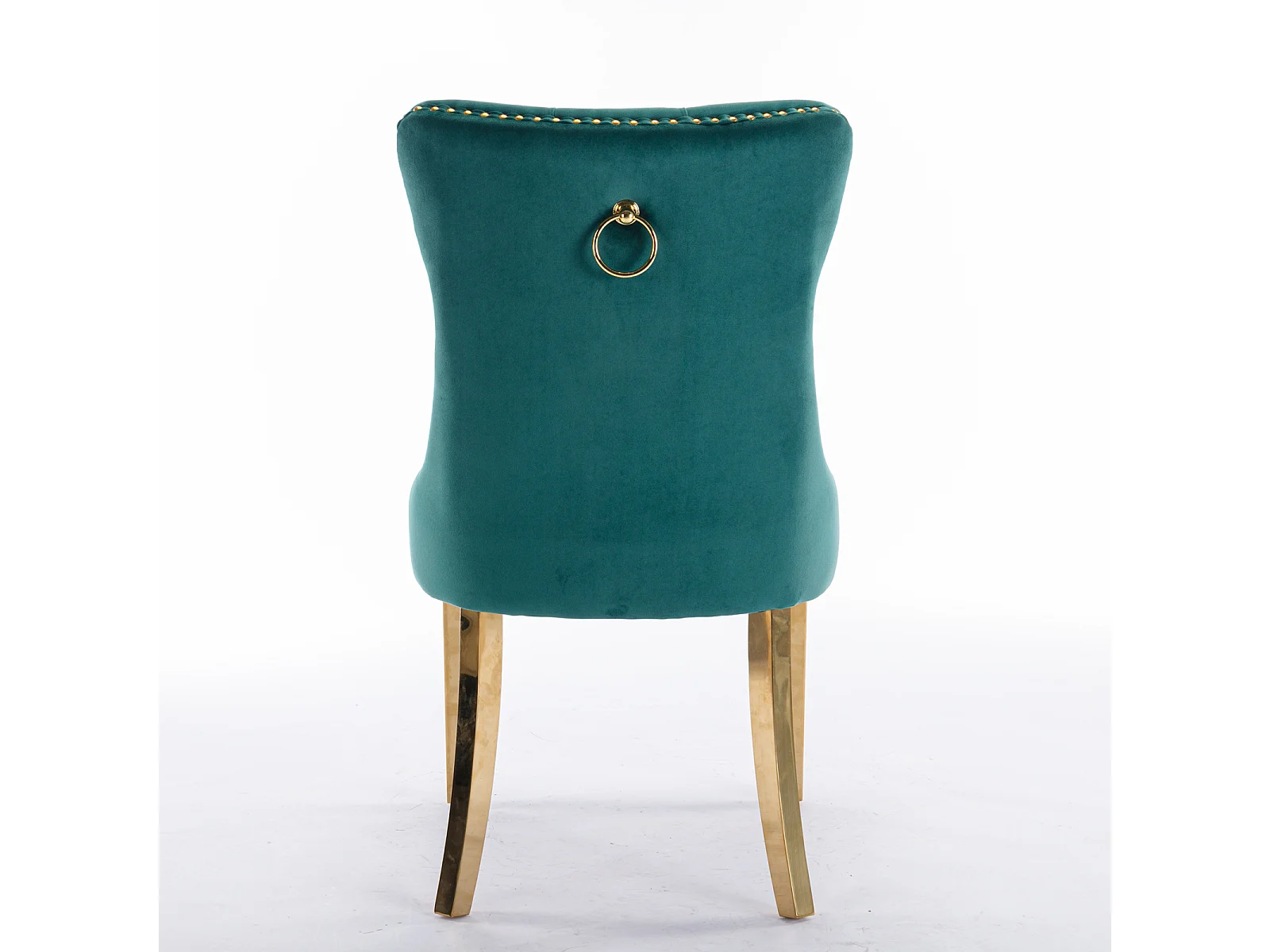 Set van 2 fluwelen stoelen met gouden metalen poten - Afgewerkt met studs - Groen