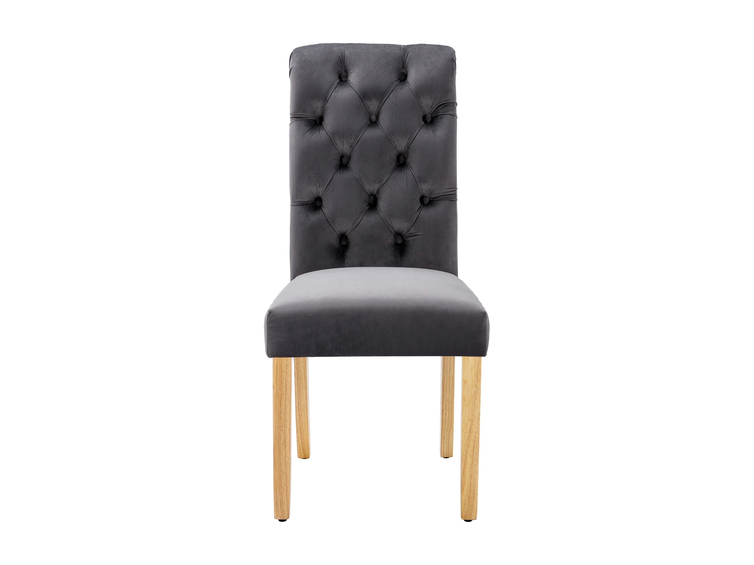 Set van 2 fluwelen stoelen met hoge rugleuningen - Eikenhouten poten - Grijs