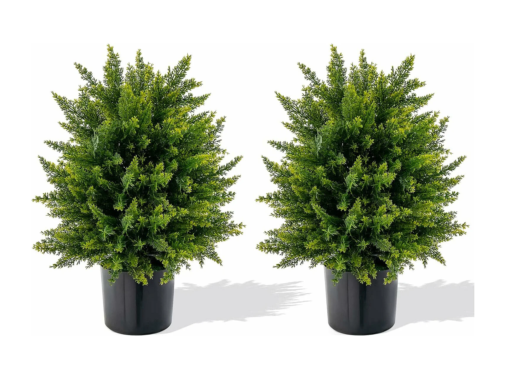 Set van 2 kunstplanten 55 cm, ceder buxusboom, kunstboom met pot, kunstmatige decoratieve plant, groene planten, kamerplant voor thuis en kantoor, groen