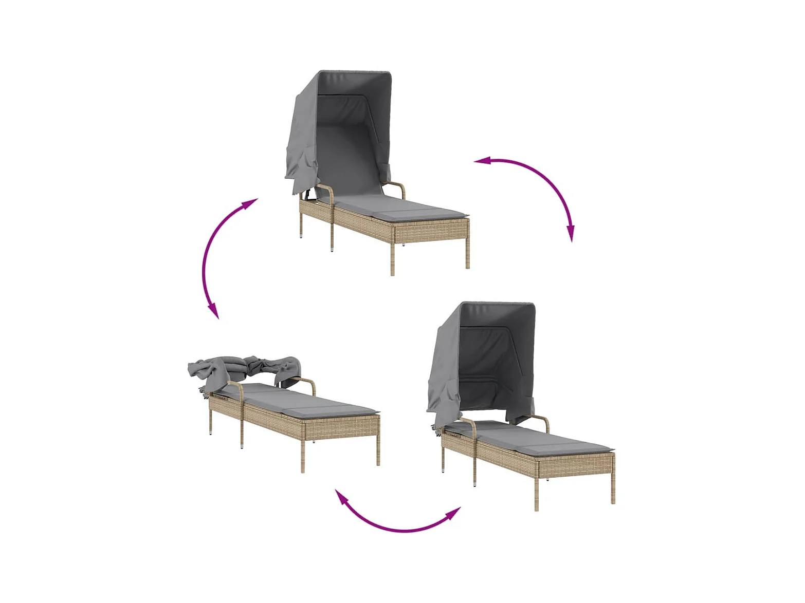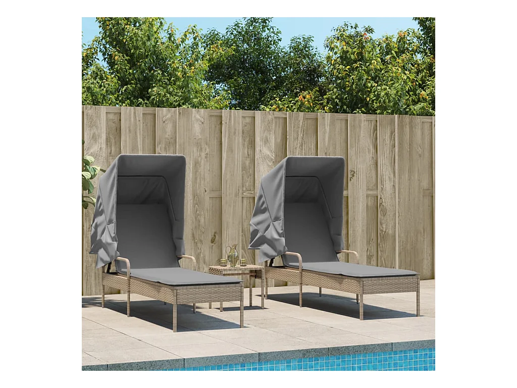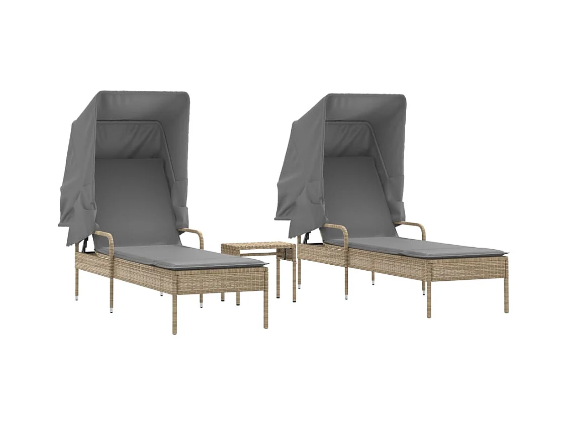 Set van 2 ligbedden met luifel en tafel in beige polyrotan