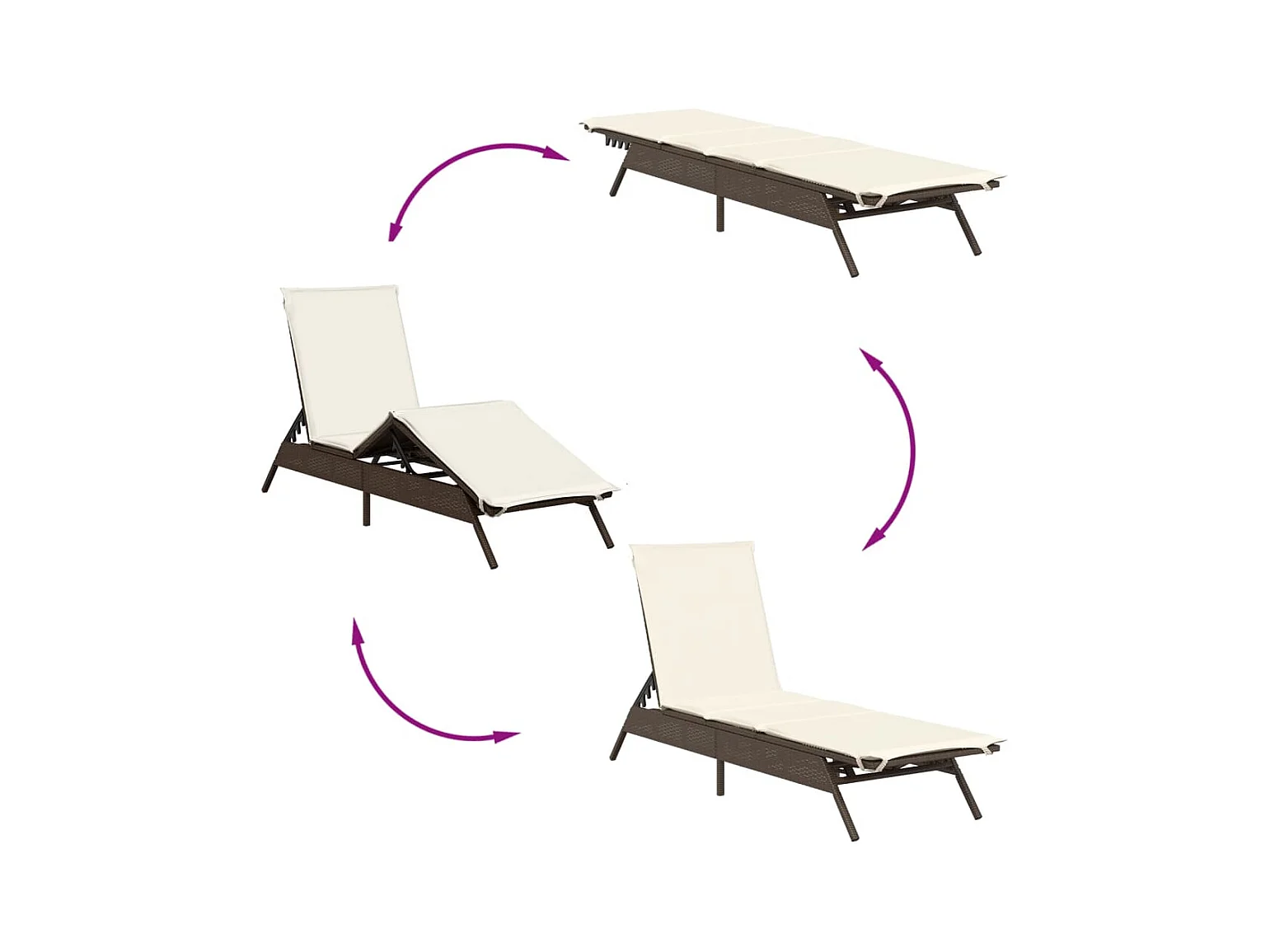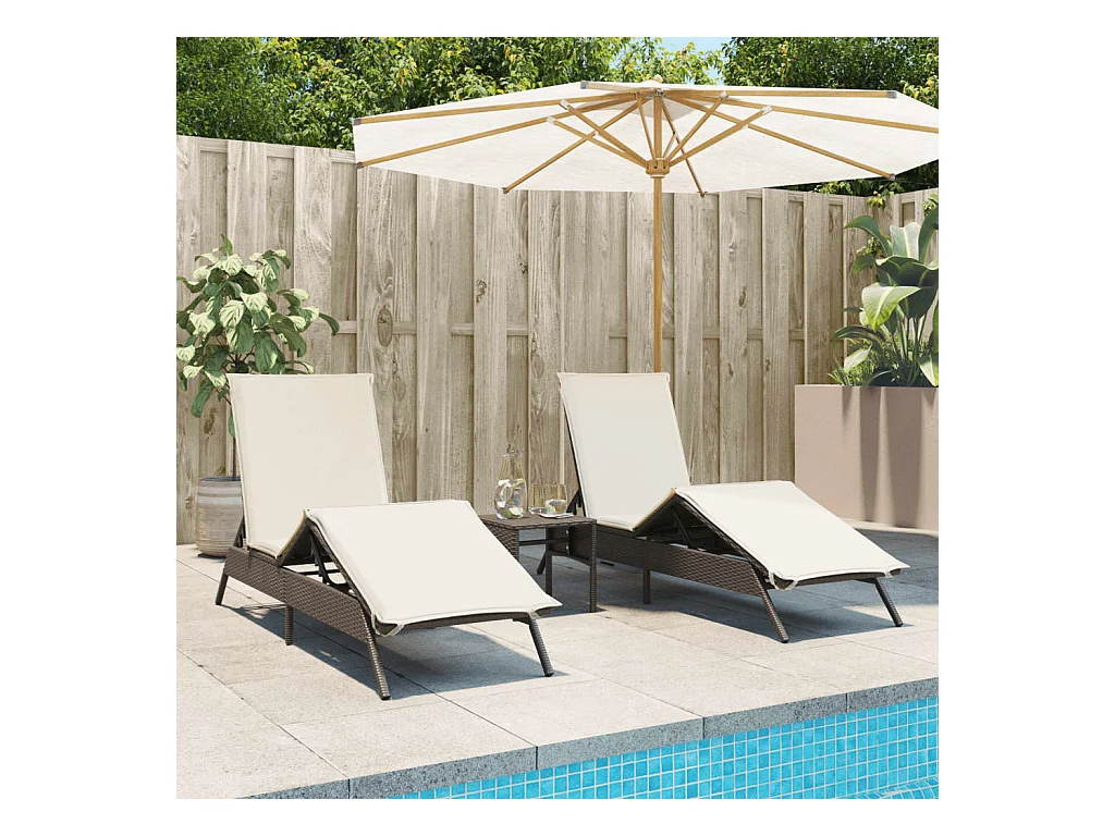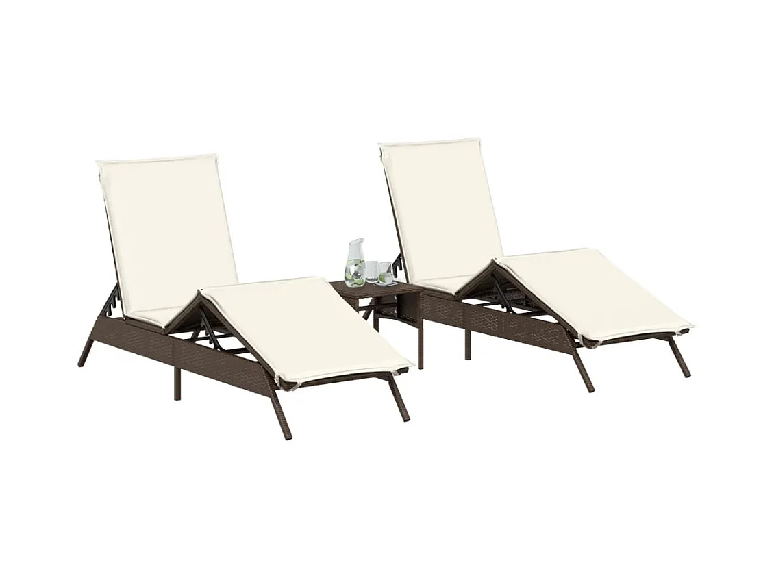Set van 2 ligstoelen met bruine kunsthars rieten tafel