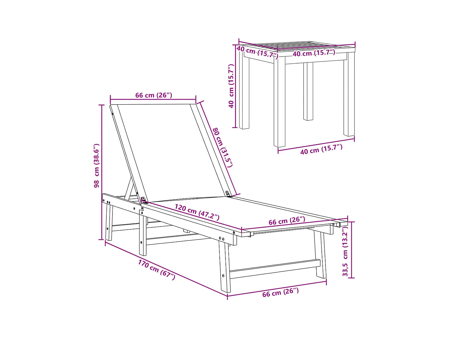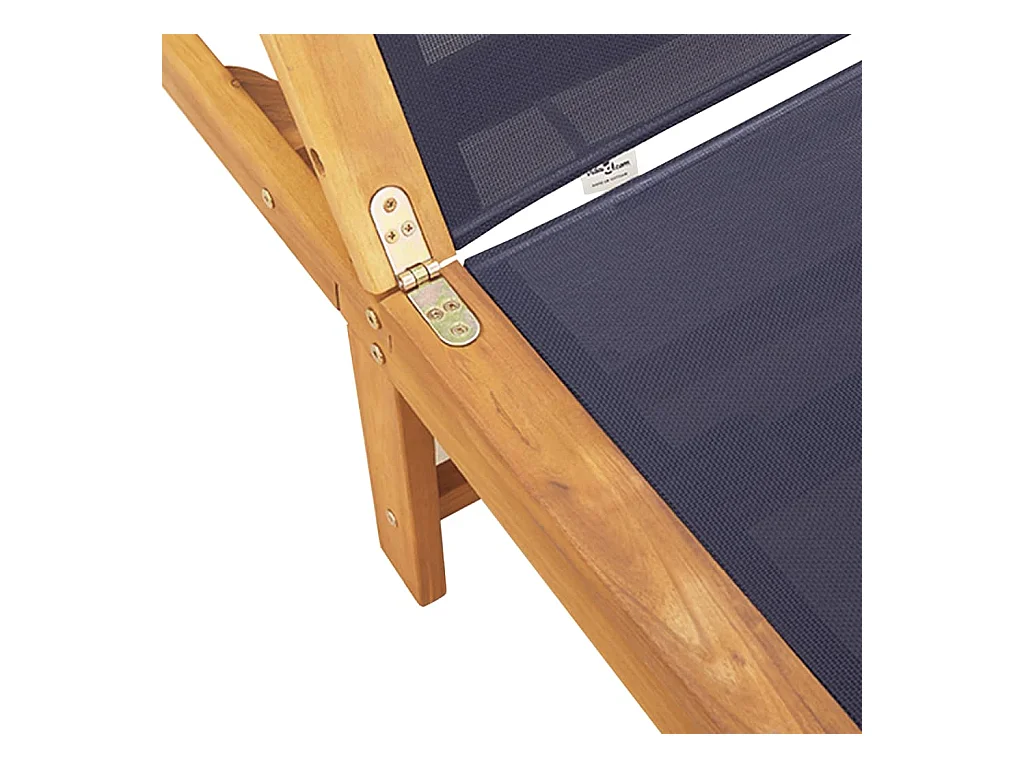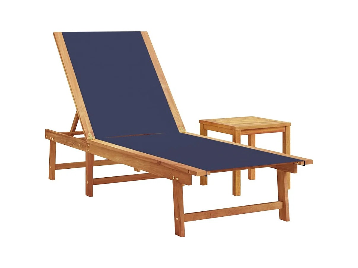 Set van 2 ligstoelen met een tafel van blauw acaciahout en textileen