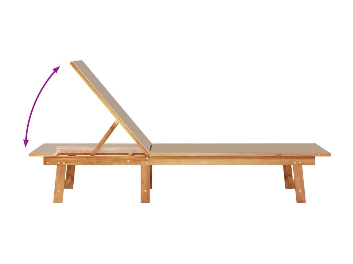 Set van 2 taupekleurige ligstoelen in massief acaciahout en textileen