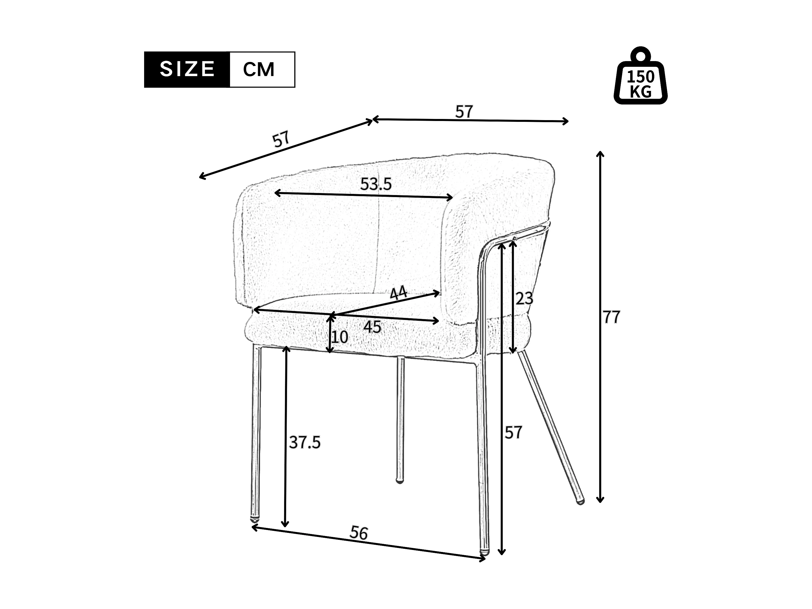 Set van 2 Lounge stoelen voor eetkamer, woonkamer of slaapkamer - in imitatie konijnendons - met 4 goud metalen poten - Beige