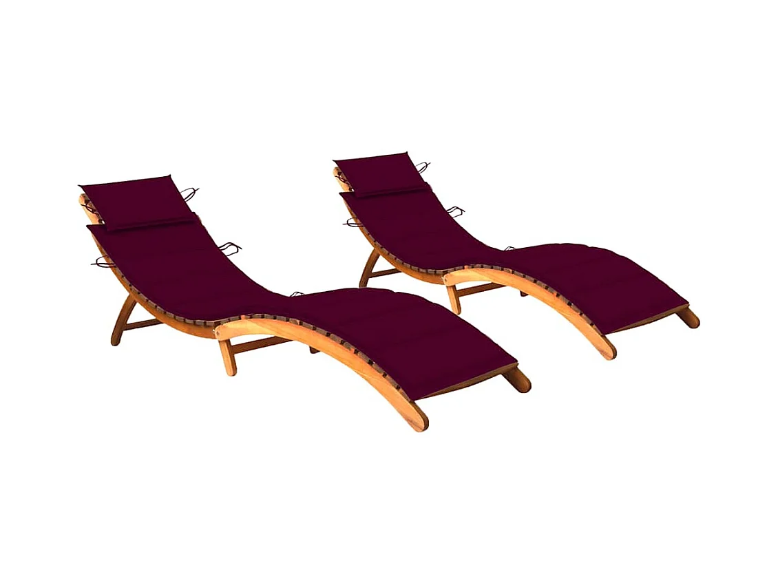 Set van 2 rode loungestoelen van massief acaciahout en stof