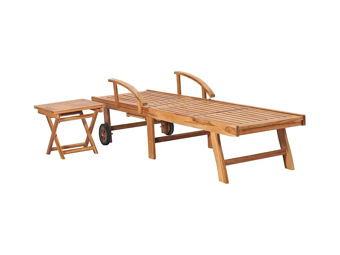 Opvouwbare ligstoelen met wielen, set van 2, Teak textileen