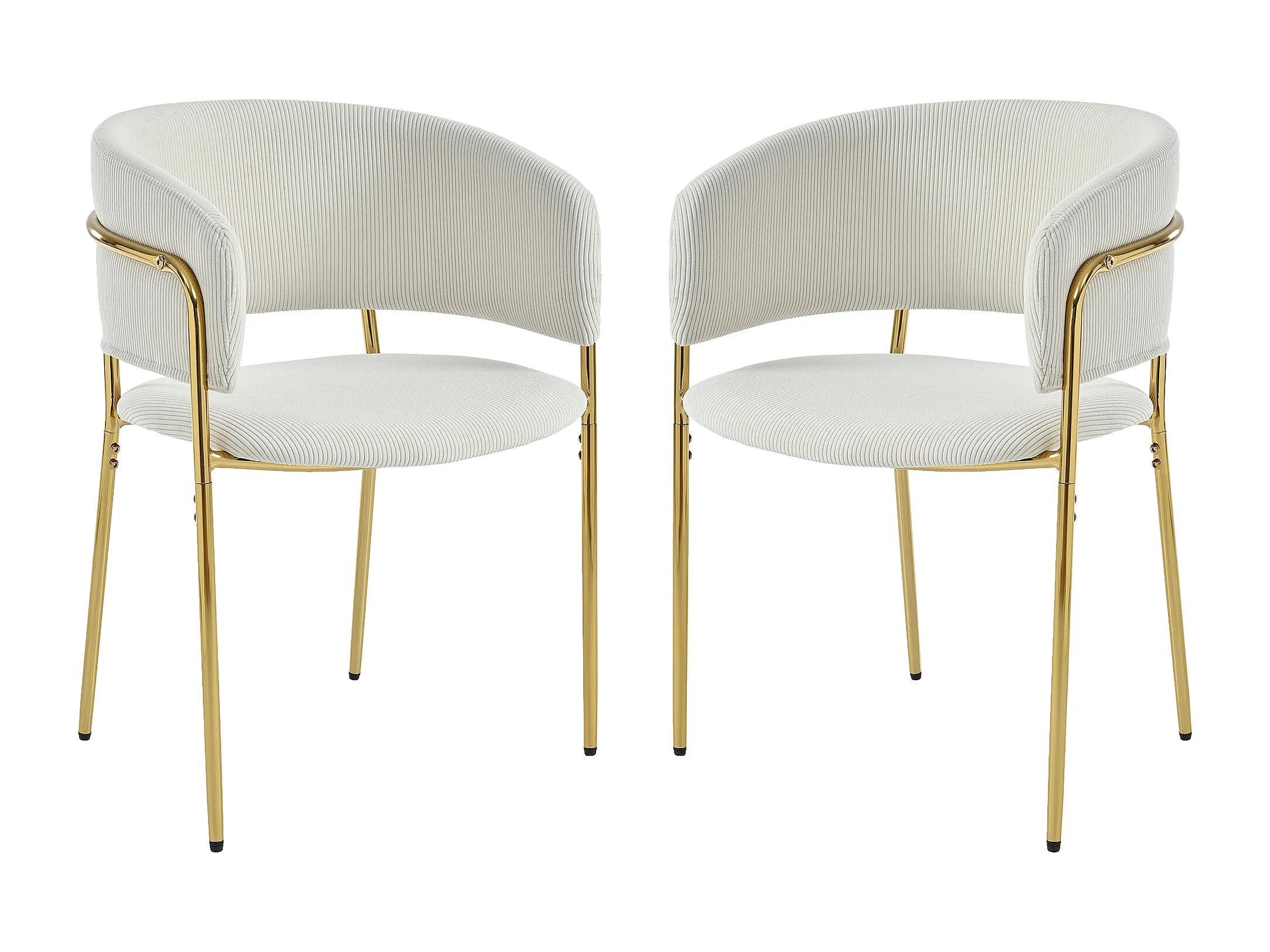 Set van 2 fluwelen eetkamerstoelen met rugleuning - gouden houten poten - beige