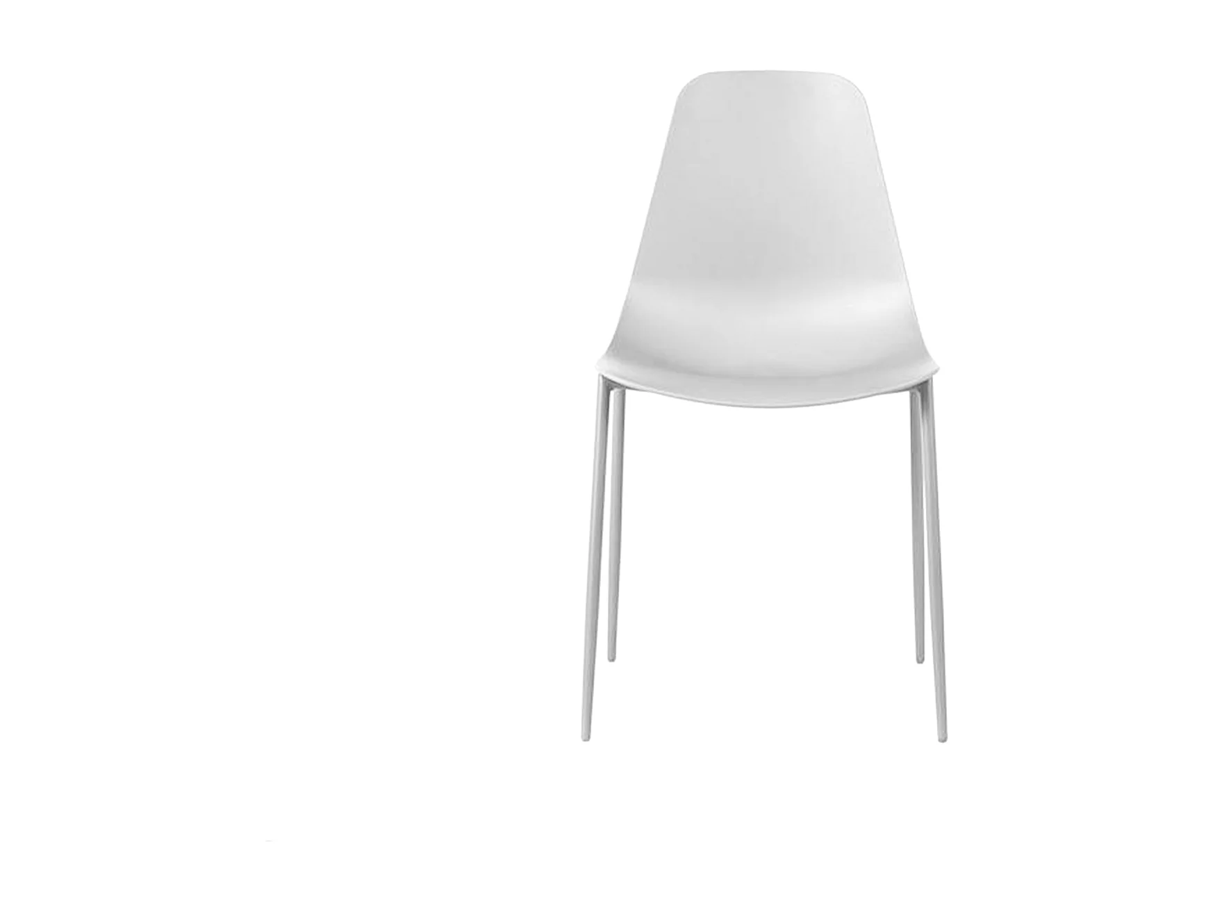 Set van 2 moderne witte polypropyleen "Kate" woonkamerstoelen met geverfd metalen frame