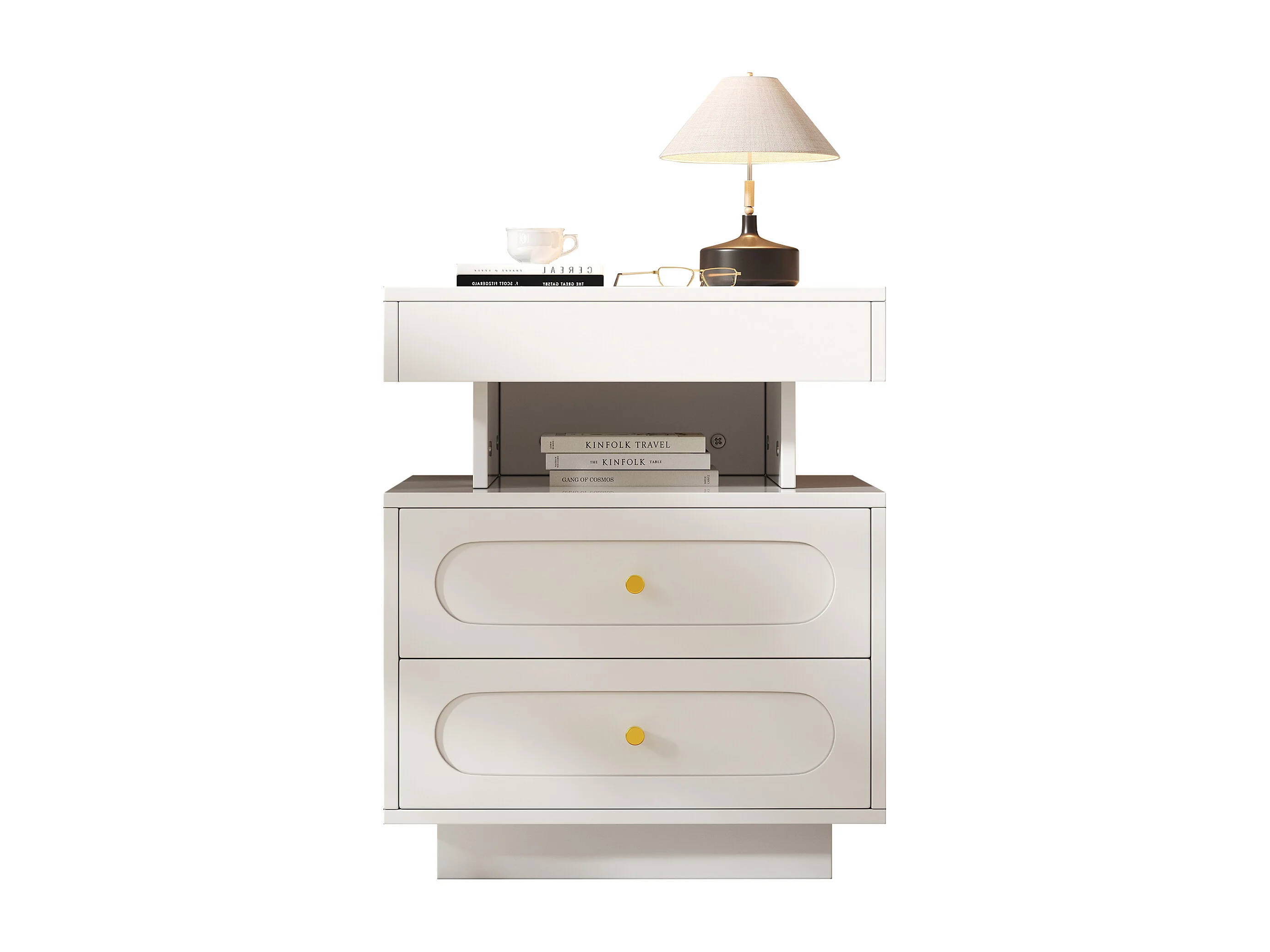 Set van twee nachtkastjes voor de slaapkamer. Collectie SENA. Kleur glanzend wit.