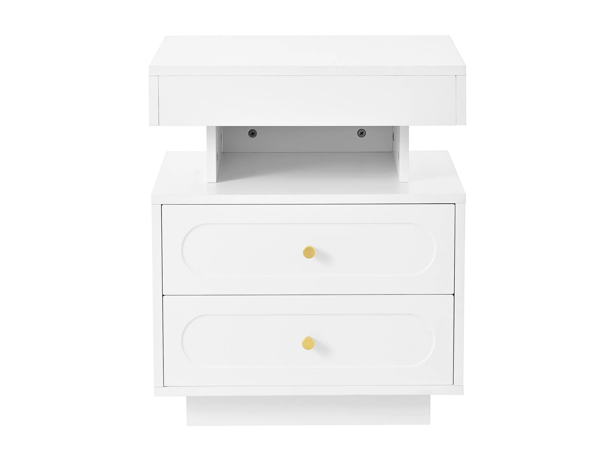 Set van 2 nachtkastjes - LED en 2 lades - Wit hout