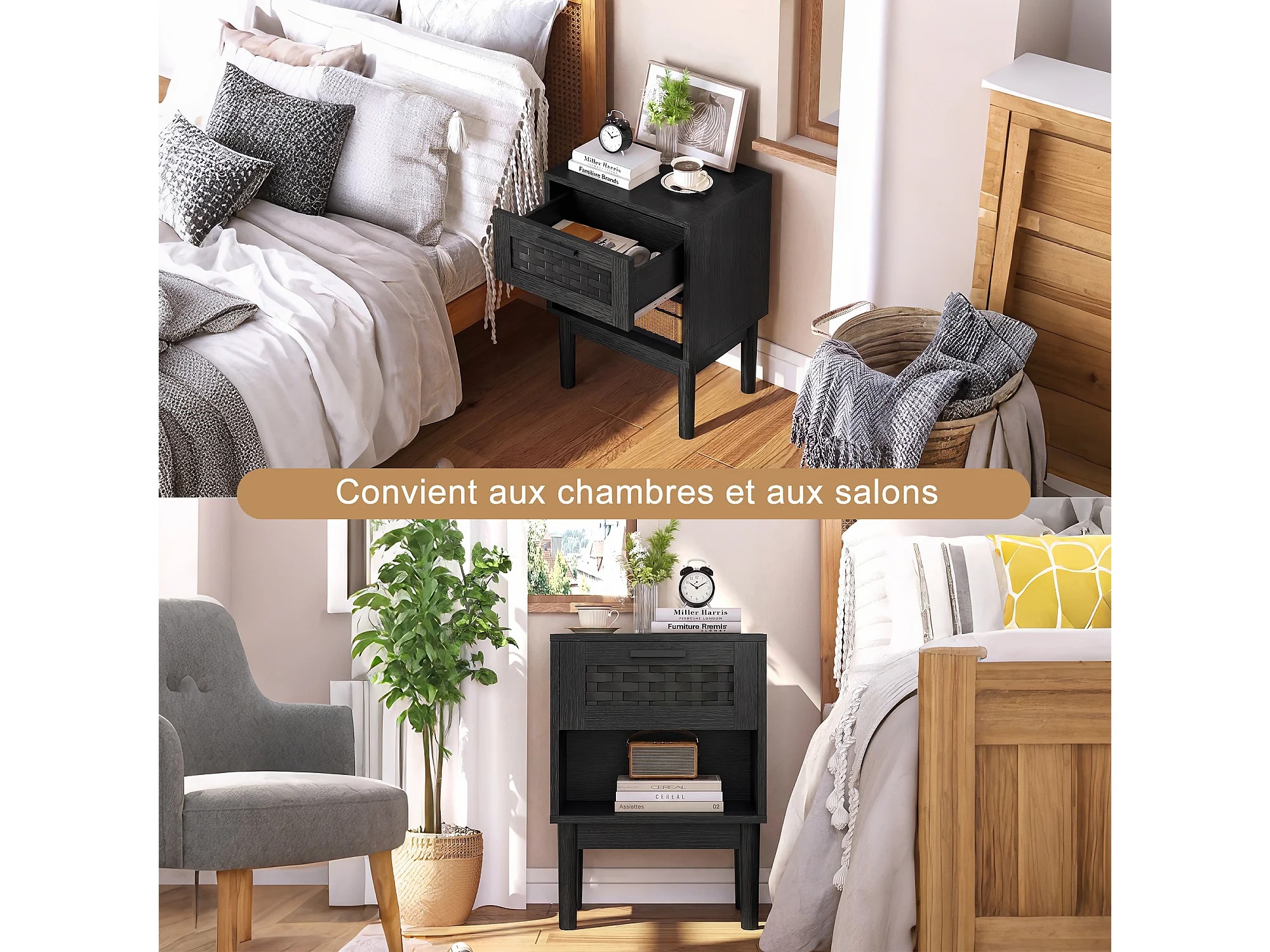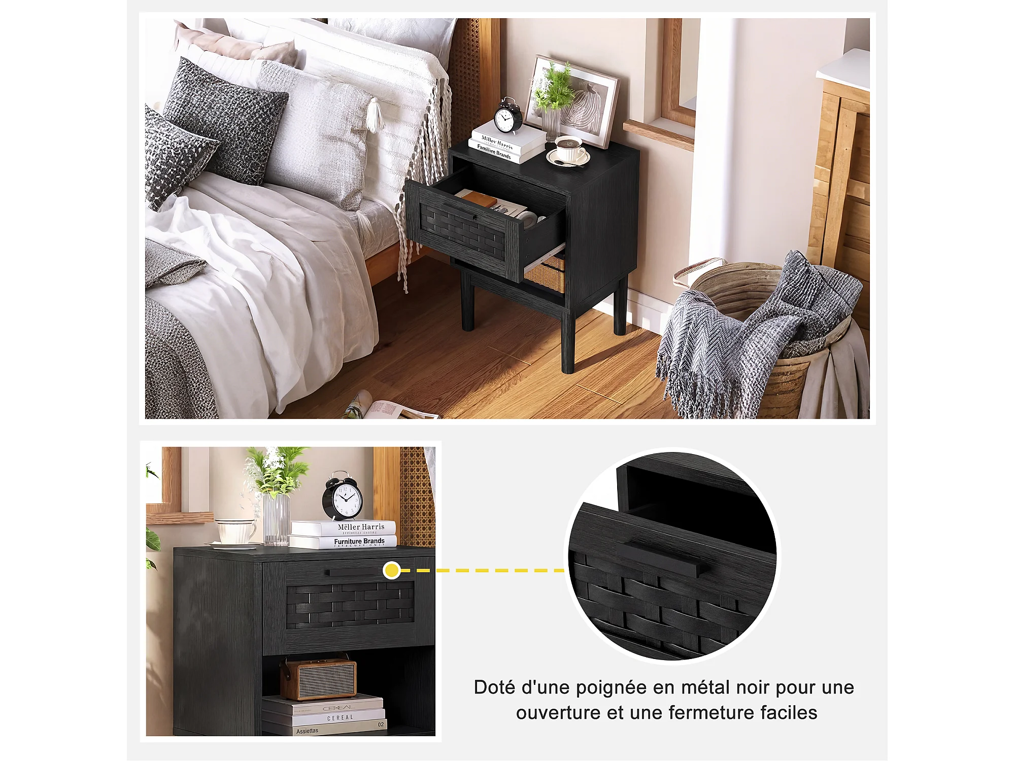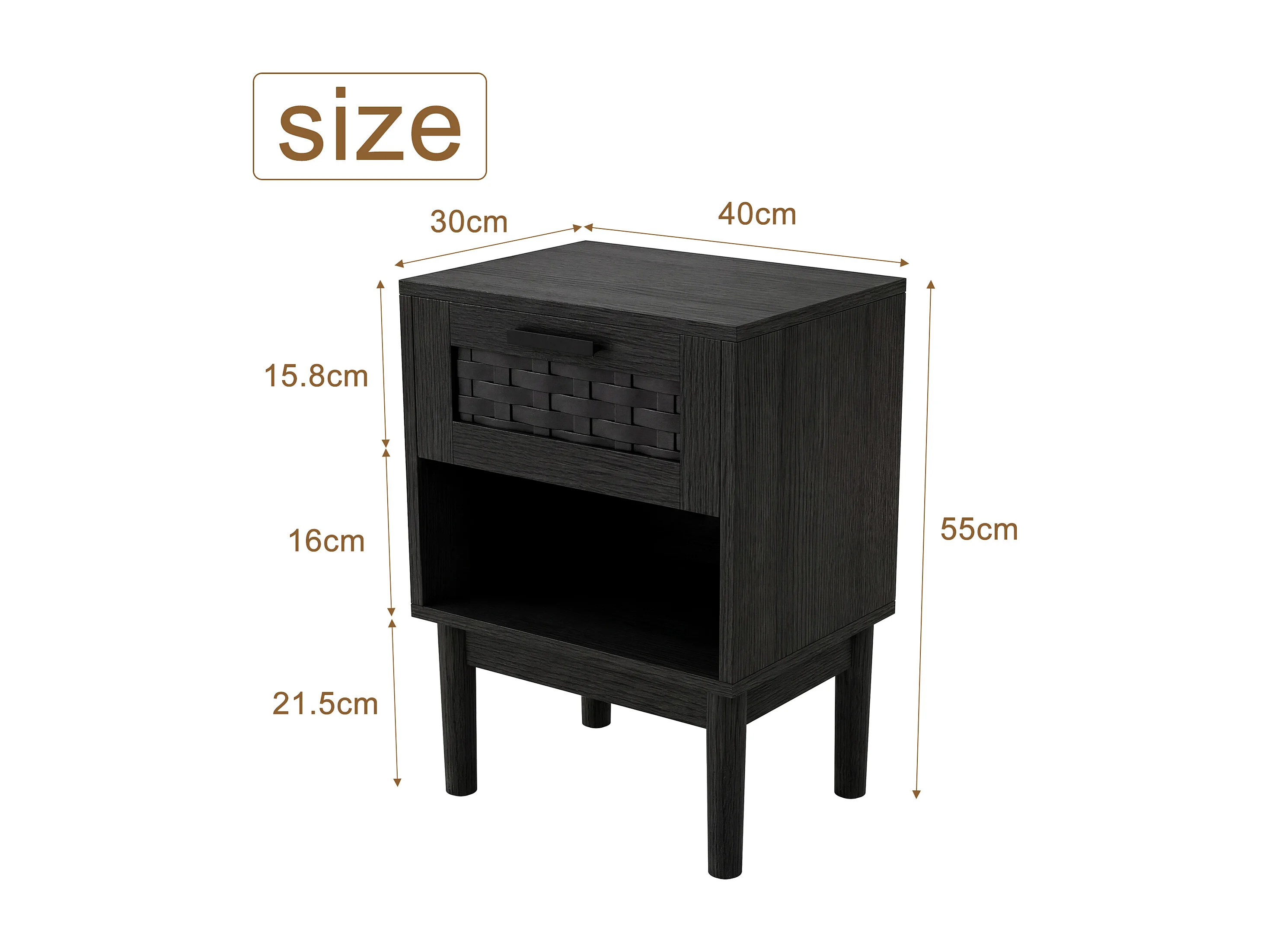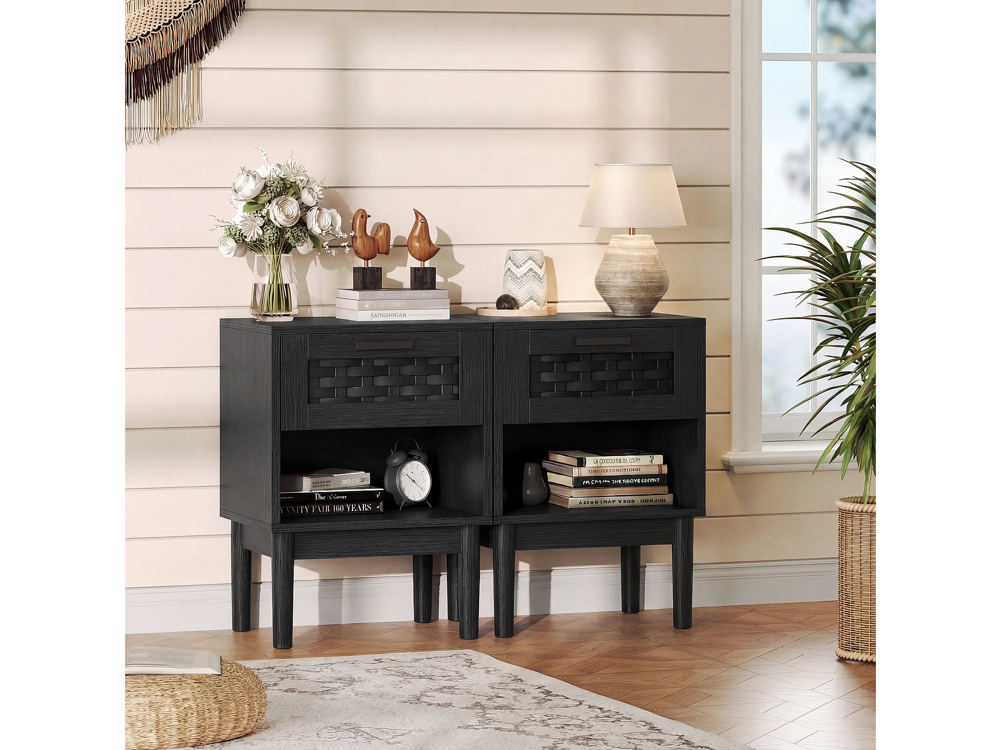 Set van 2 nachtkastjes met lades en open schappen, met opbergruimte, 40 x 30 x 55 cm (zwart)