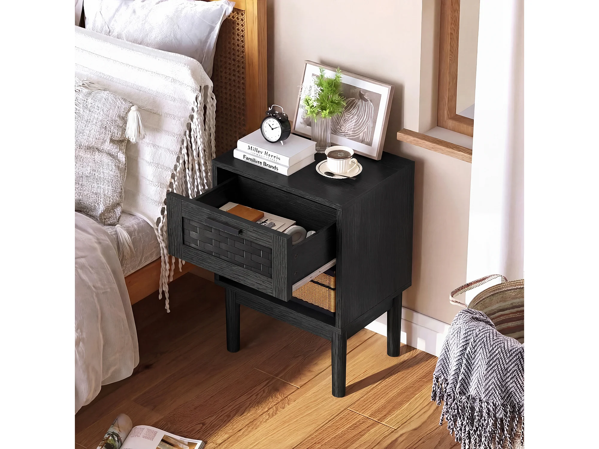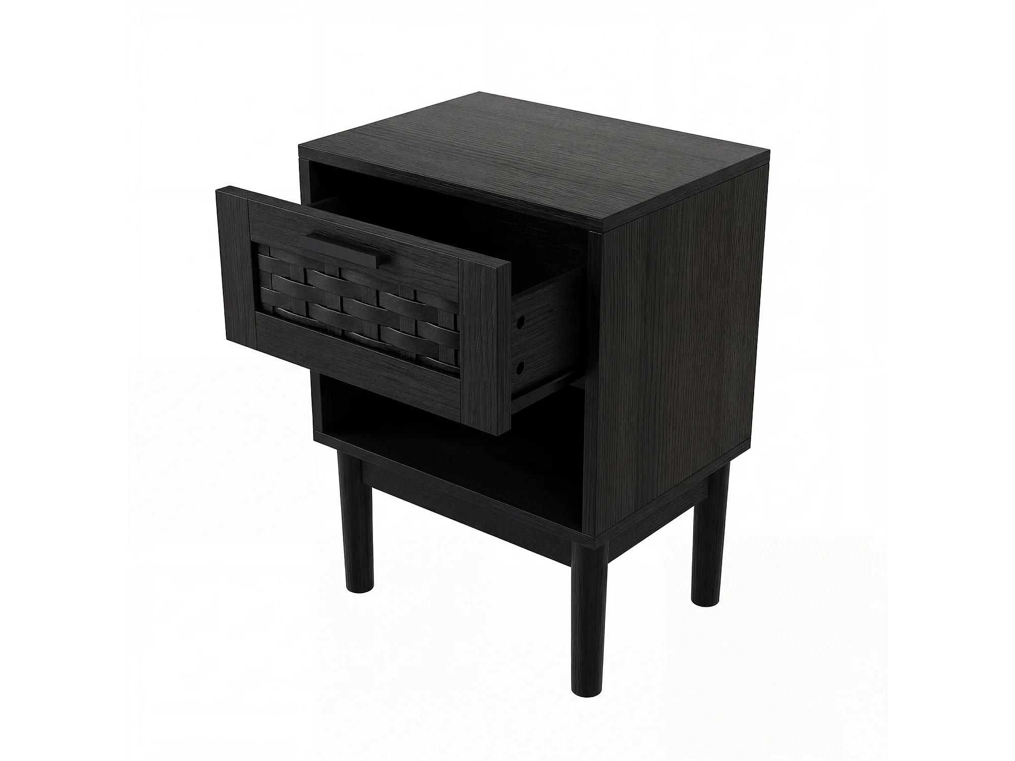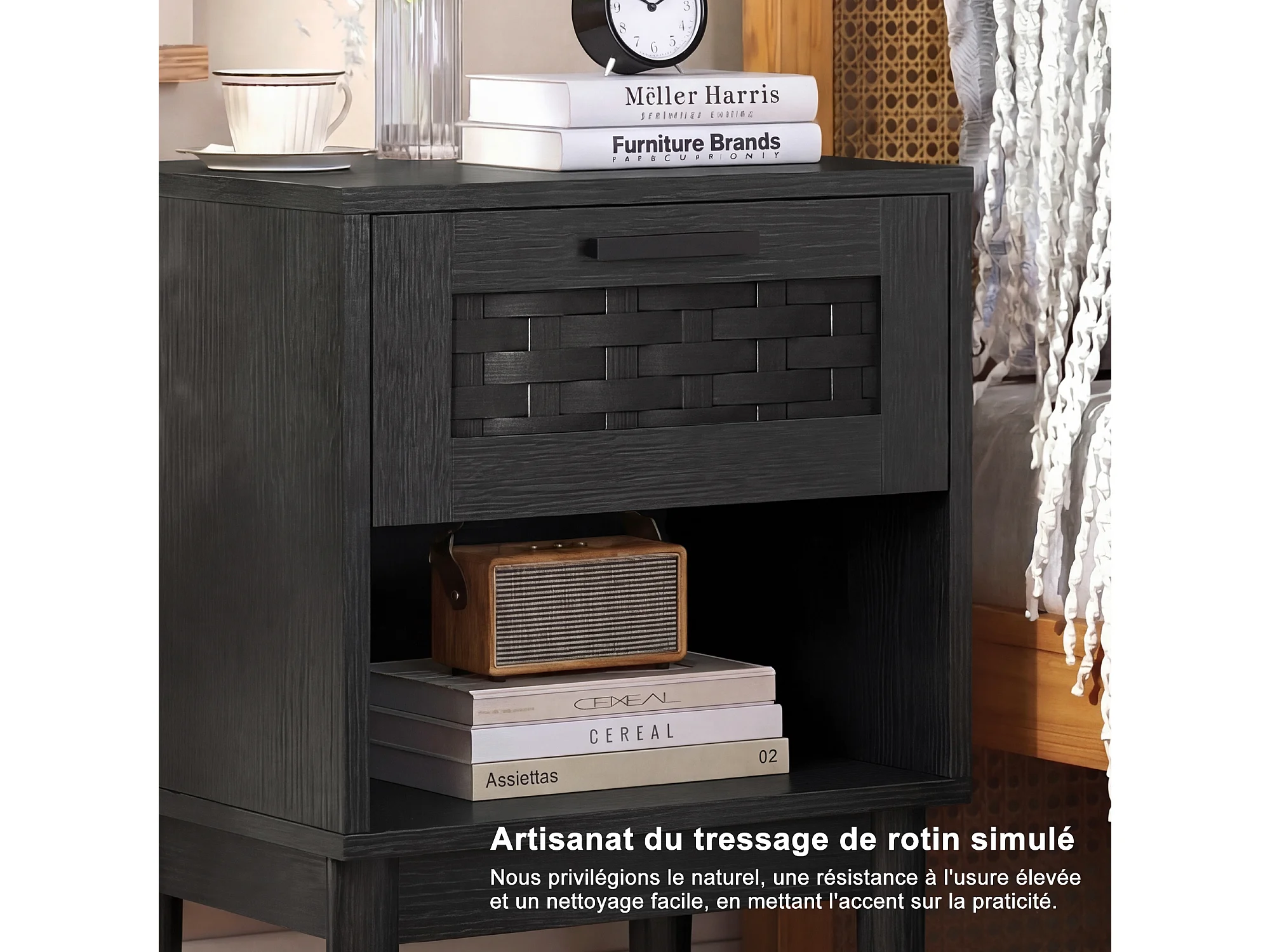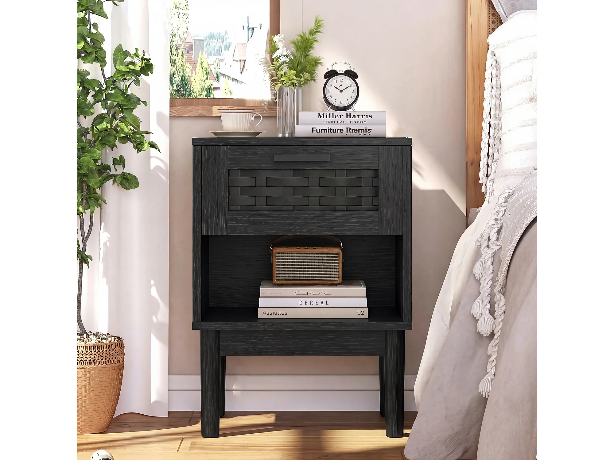Set van 2 nachtkastjes met lades en open schappen, met opbergruimte, 40 x 30 x 55 cm (zwart)