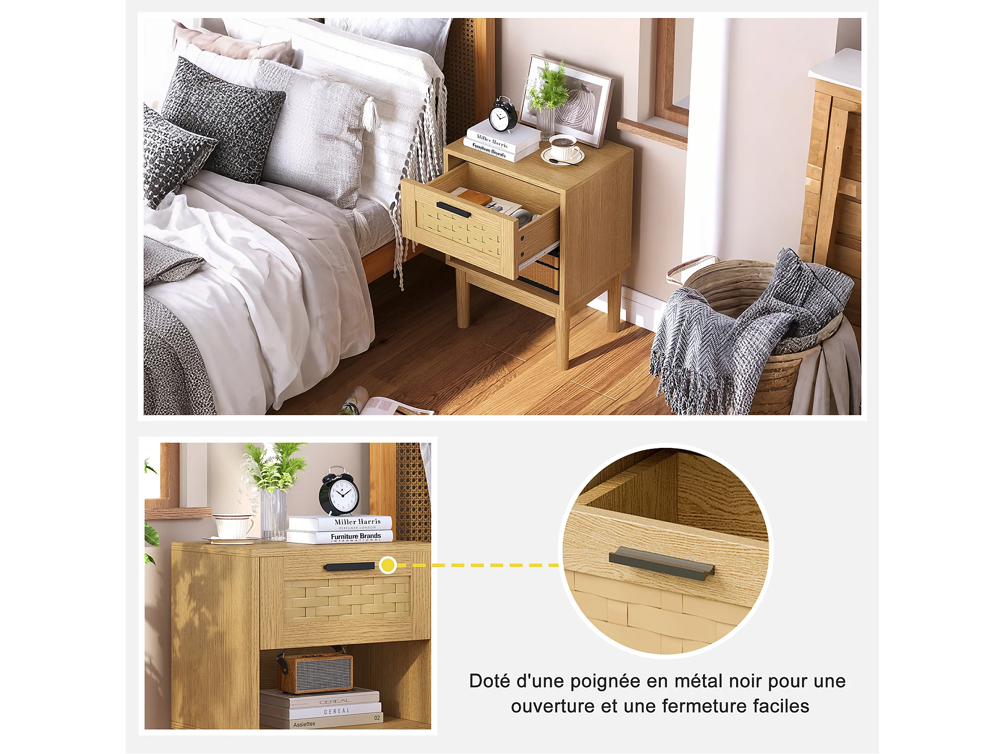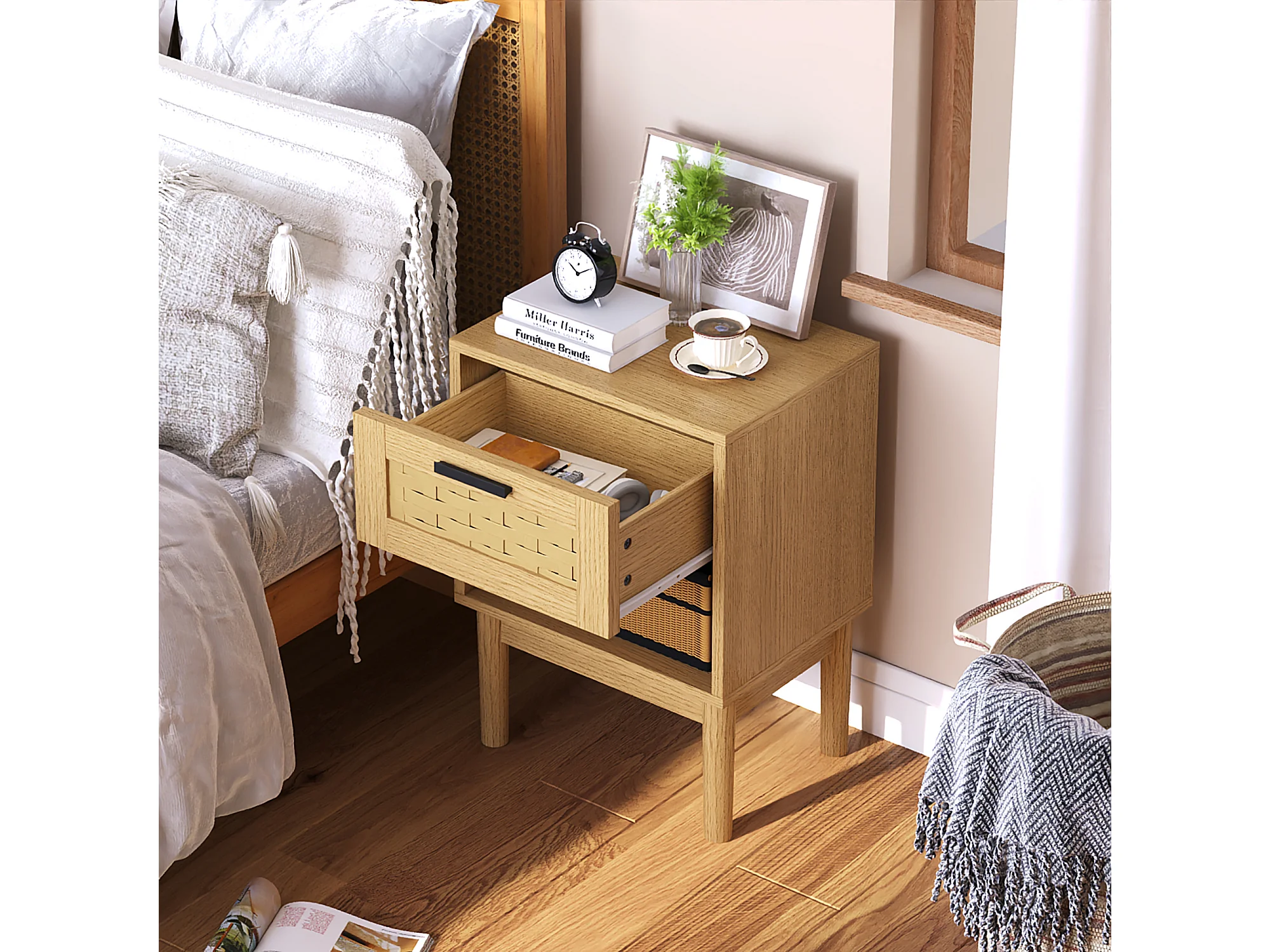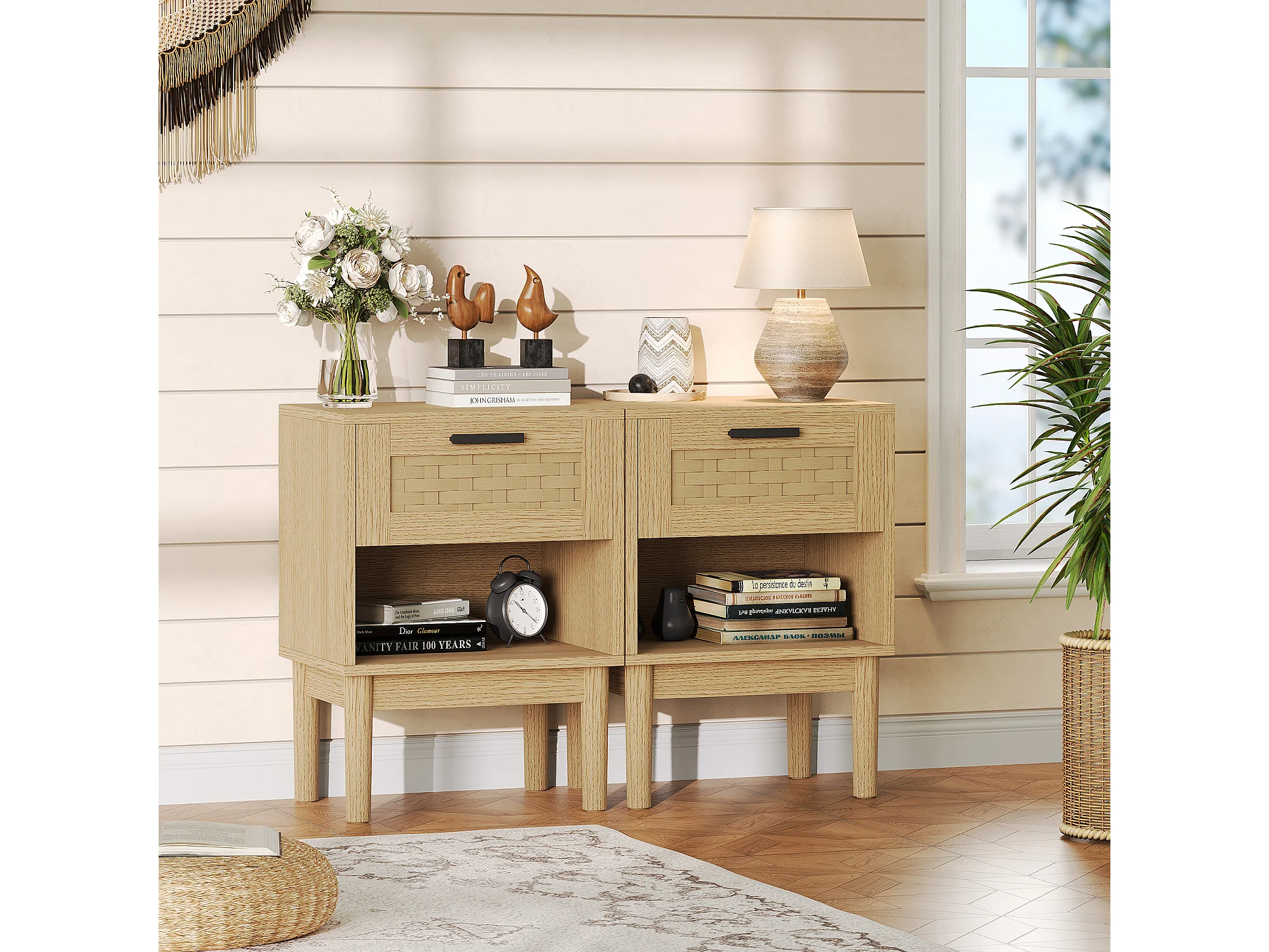 Set van 2 nachtkastjes - met lades en open schappen - opbergmeubel - 40 x 30 x 55 cm (eikenhout)