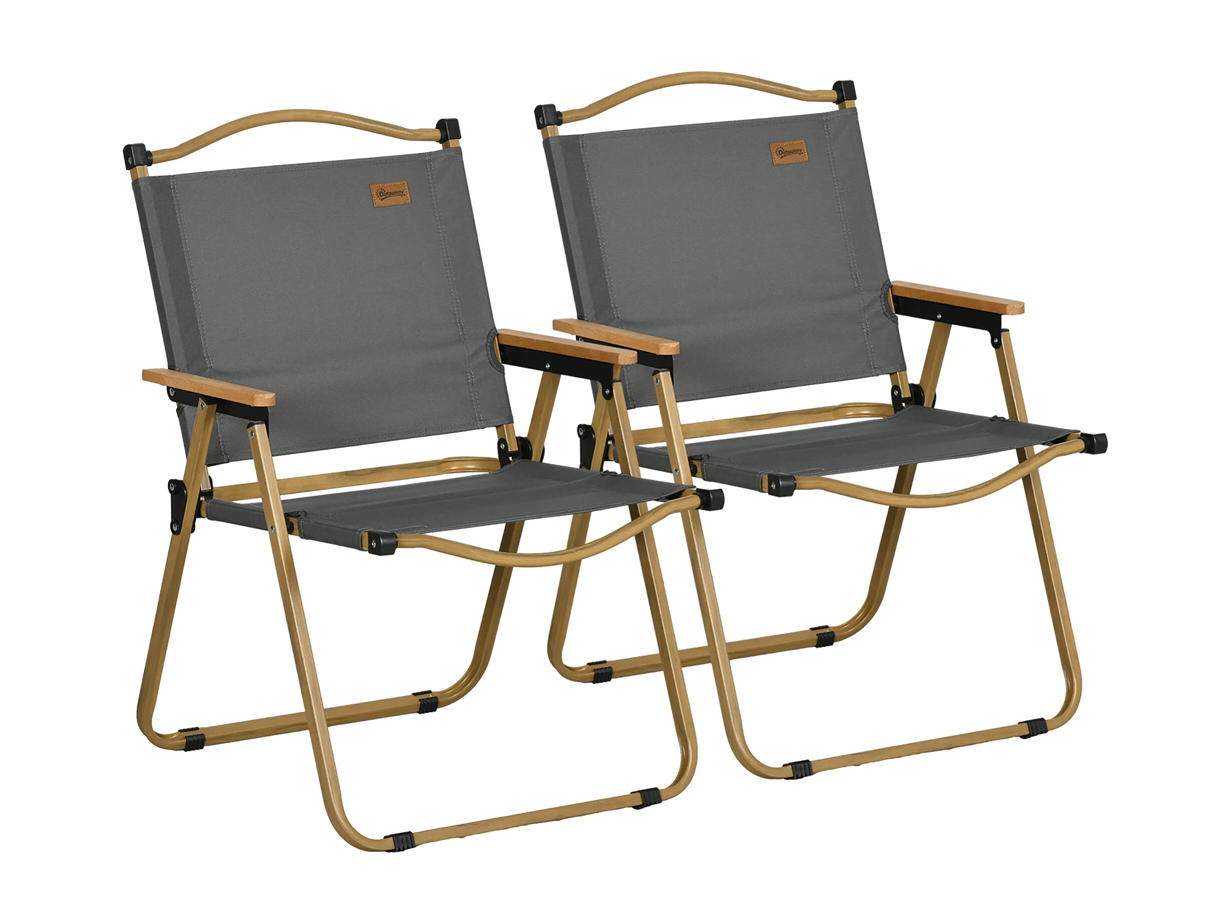 Set van 2 opvouwbare kampeerstoelen, metalen frame, Oxford-stof, houtlook, donkergrijs (54x59x78 cm)