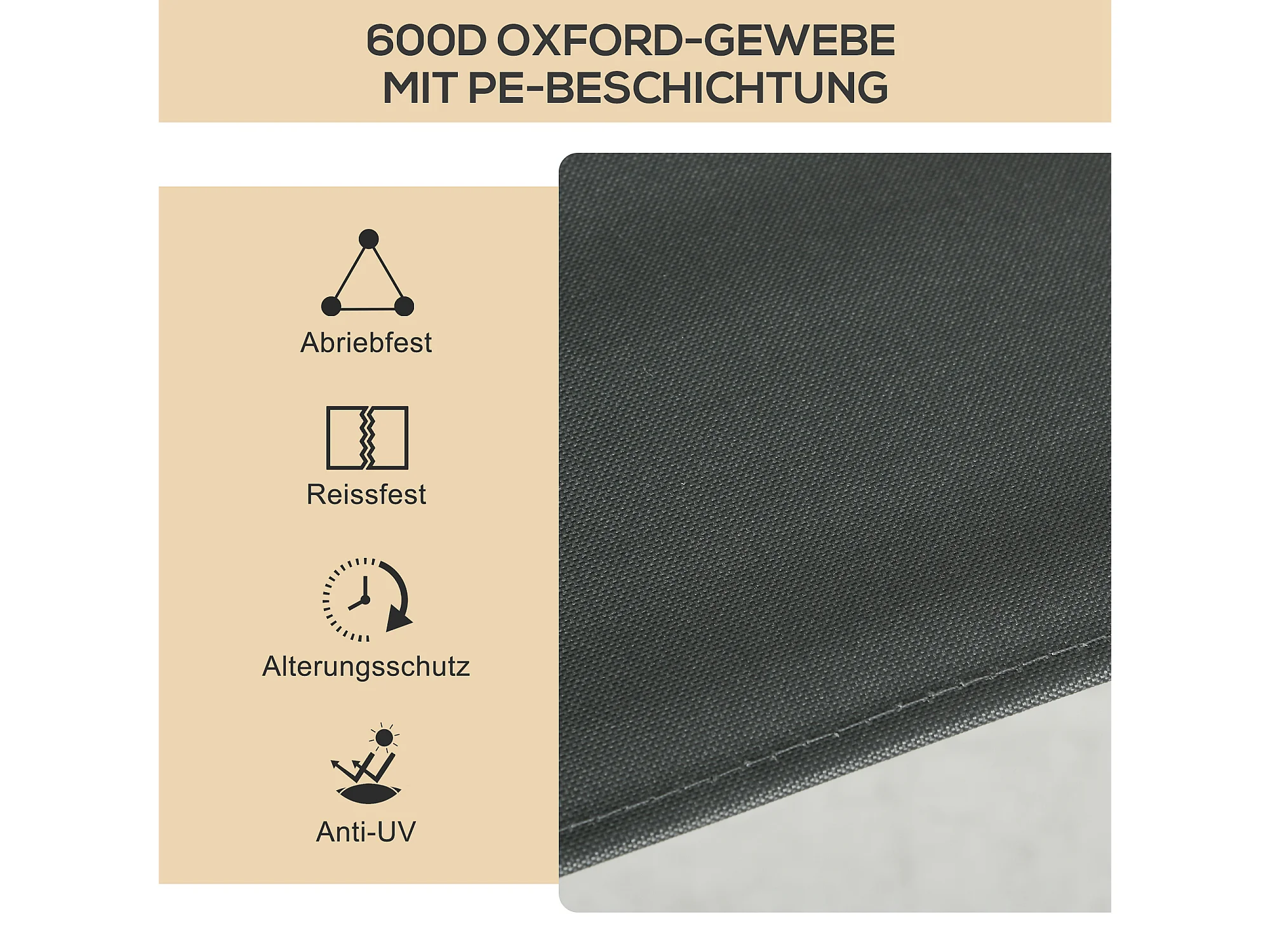 Opvouwbare ligstoel, 5-voudig verstelbare rugleuning, duurzaam polyester, donkergrijs (189x68x36cm)
