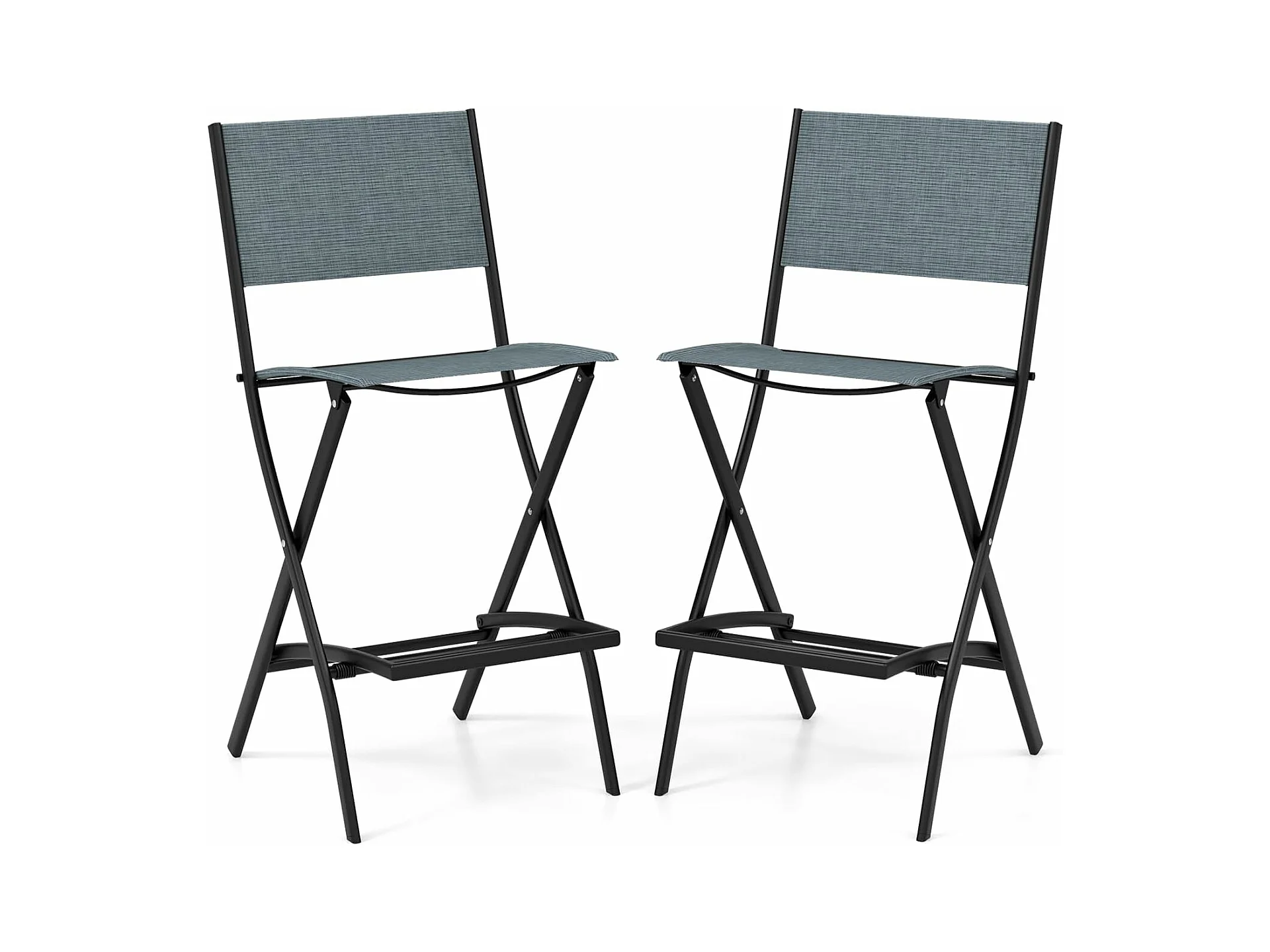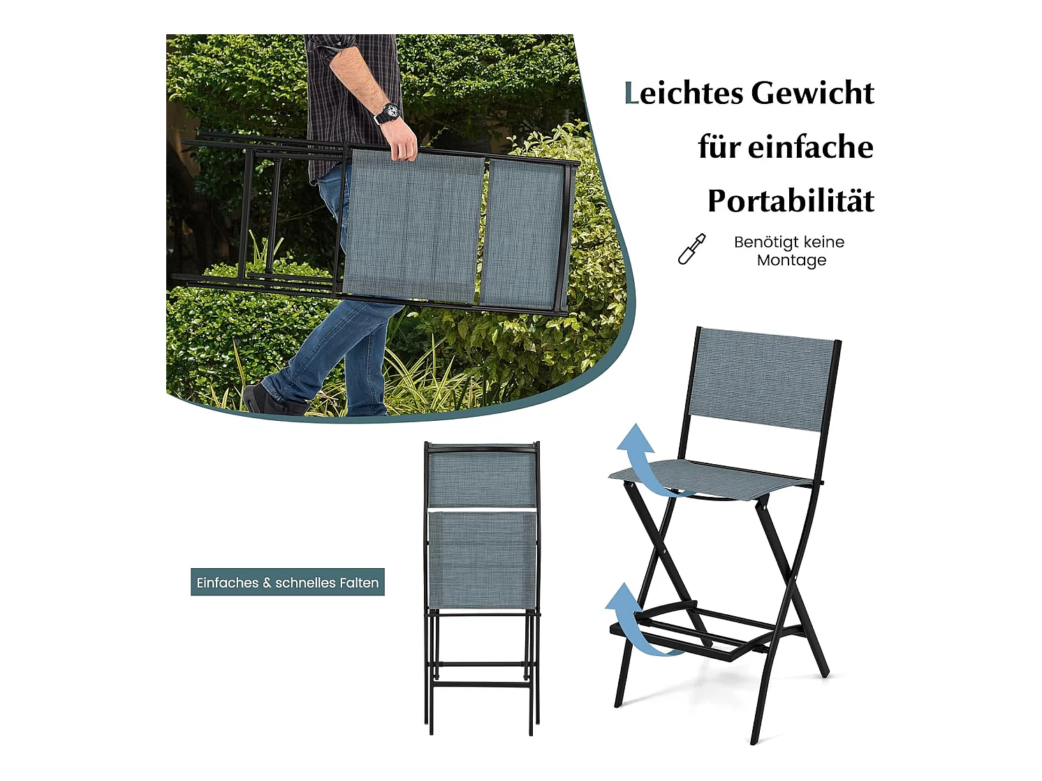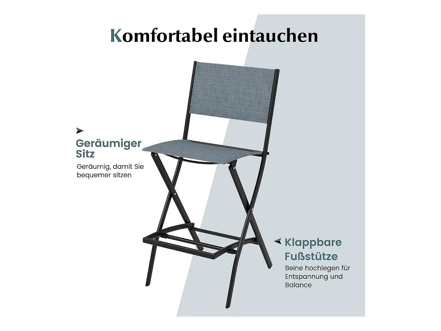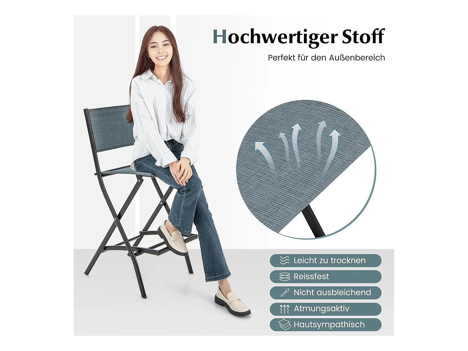 Set van 2 outdoor barkrukken, inklapbare barstoelen, barkruk tot 150 kg belastbaar, zithoogte 71 cm, tuinstoelen voor balkon, tuin en zwembad, blauwZB33563