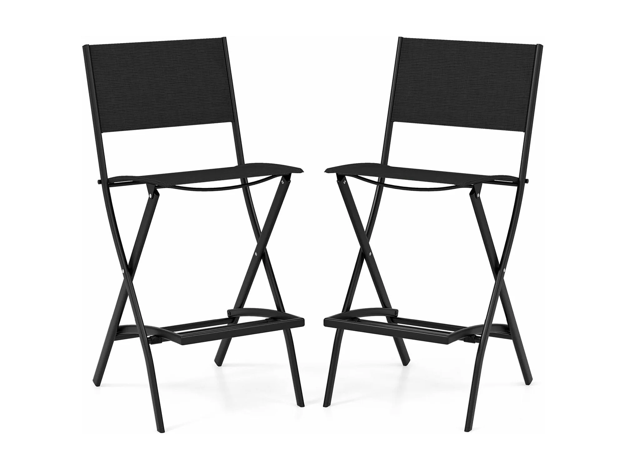 Set van 2 outdoor barkrukken, inklapbare barstoelen, tot 150 kg belastbaar, zithoogte 71 cm, tuinstoelen voor balkon, tuin en zwembad, zwartZB33563