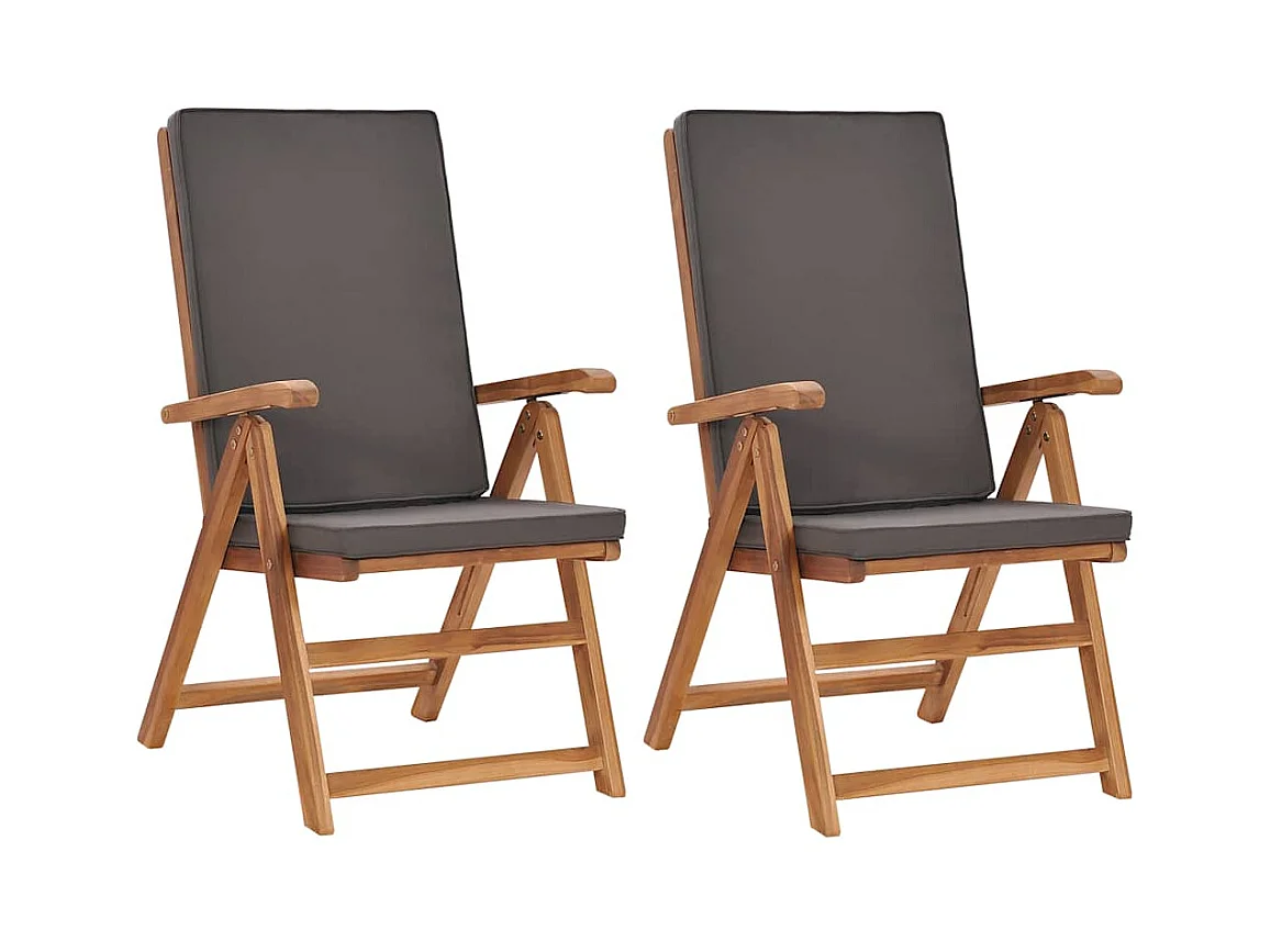 Set van 2 tuinstoelen met antraciet kussens Teakhout