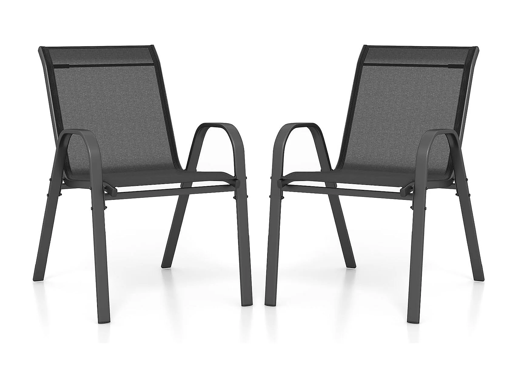 Set van 2 stapelbare tuinstoelen, stapelstoelen van textiel en metalen frame,balkonstoelen, belastbaar tot 150 kg, 56 x 70 x 84 cm (zwart)ZB33717