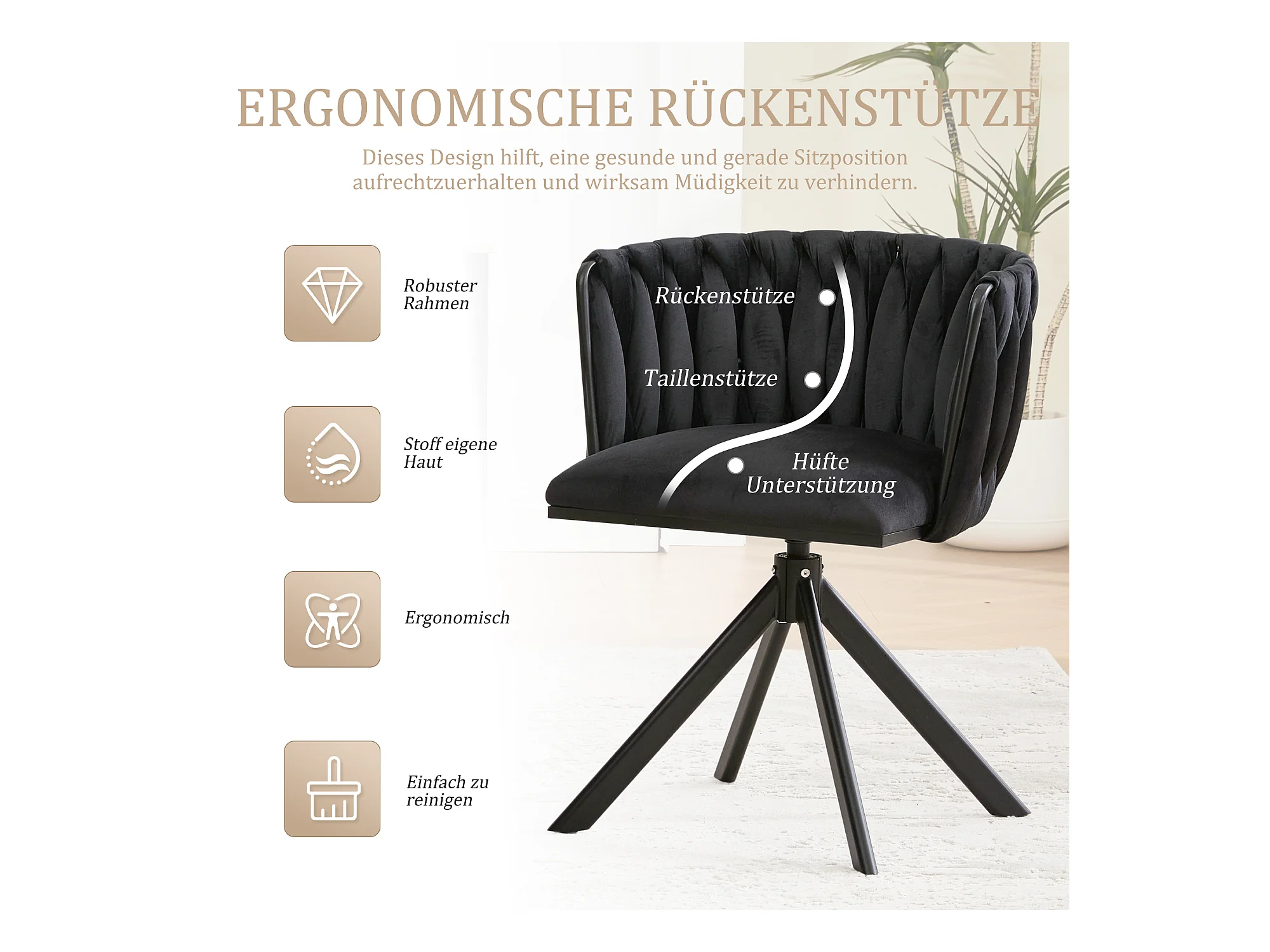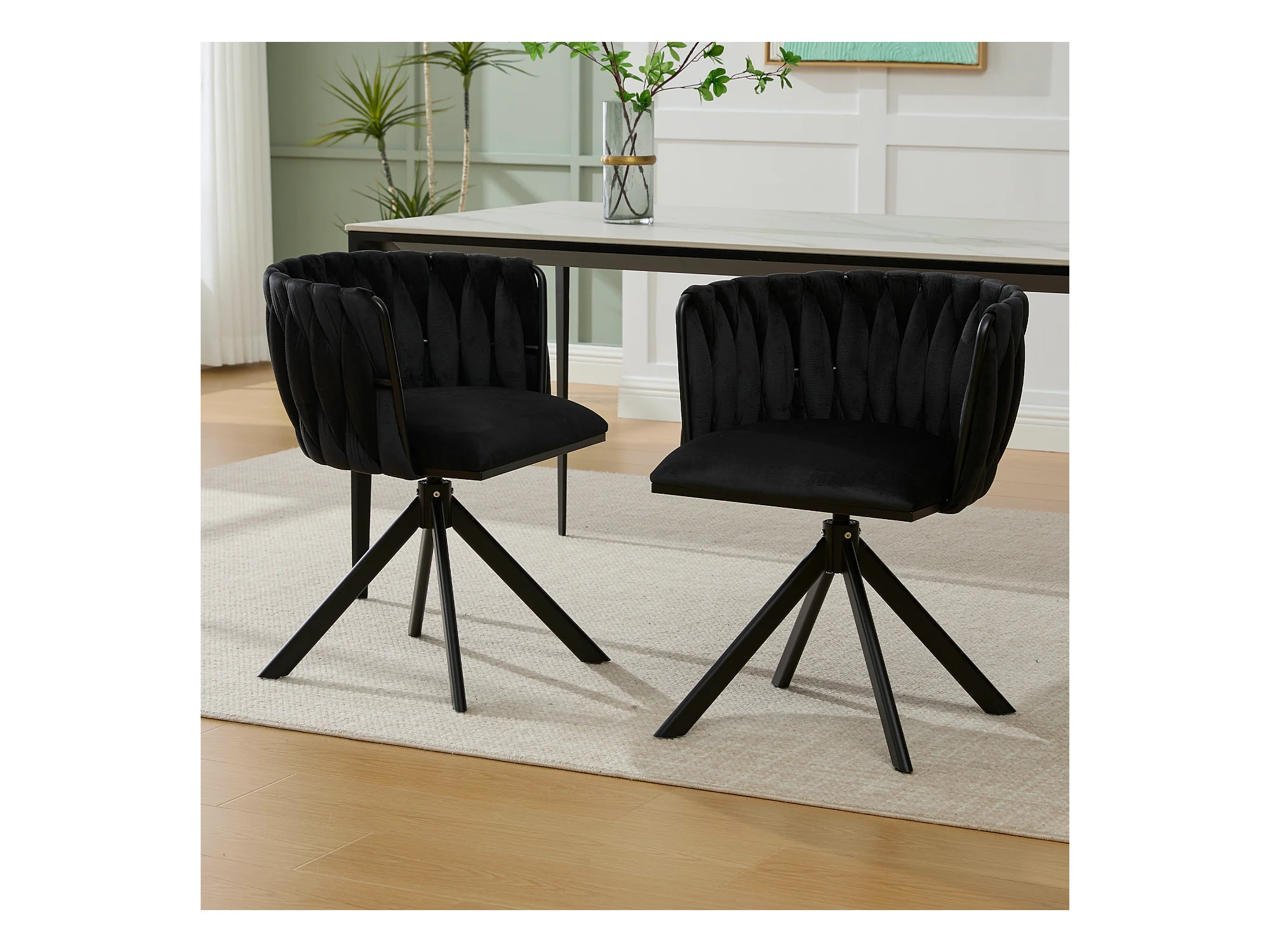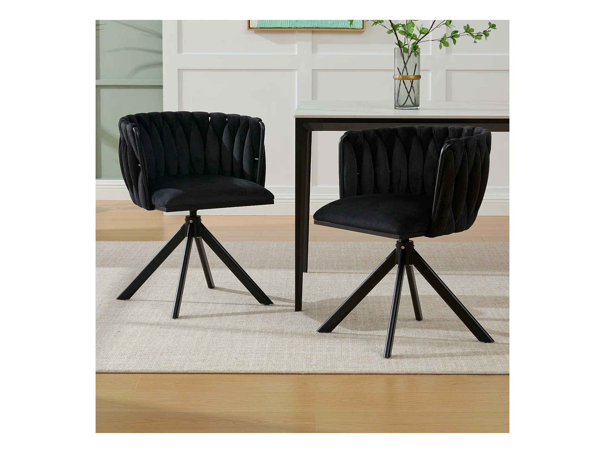 Set van 2 stoelen met metalen frame - 56 x 50 x 70 cm - 180° draaibaar - zwarte poten - fluweel - zwart