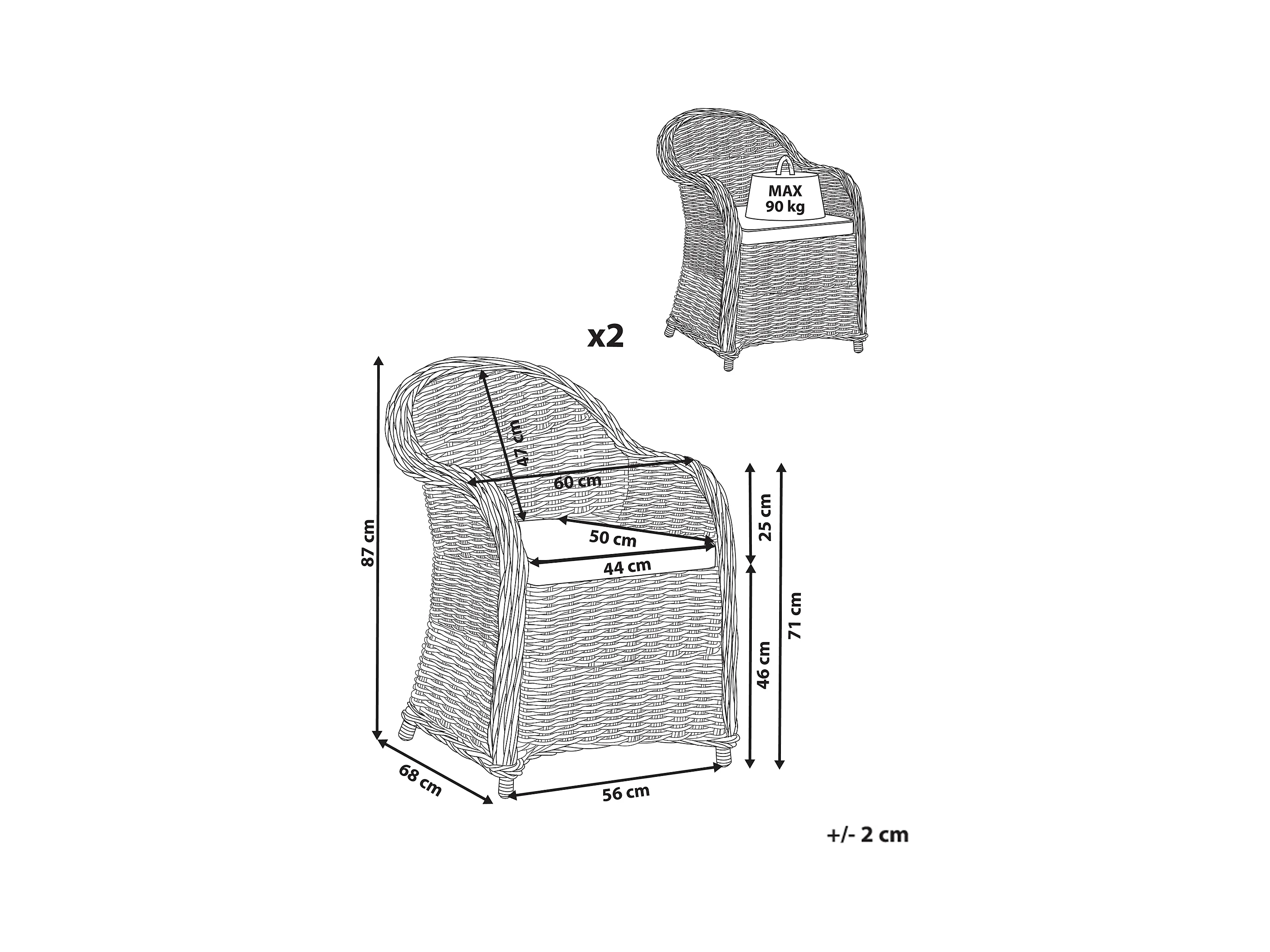 Tuinstoel set van 2 rotan naturel SUSUA II