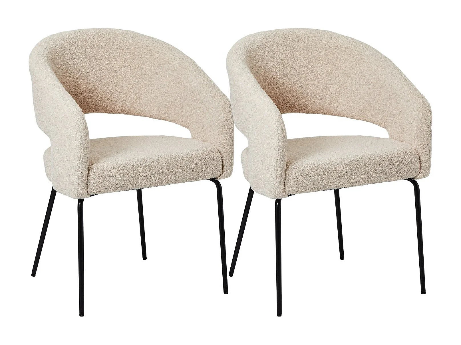 Set van 2 stoelen Natalie - Met armleuning - Boucléstof & metaal - Beige