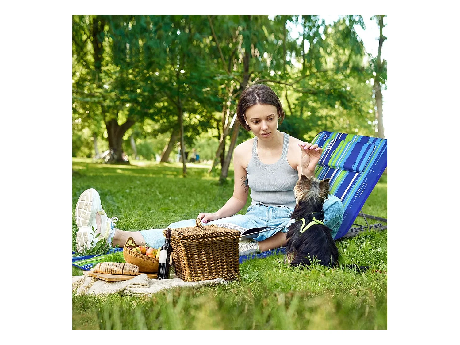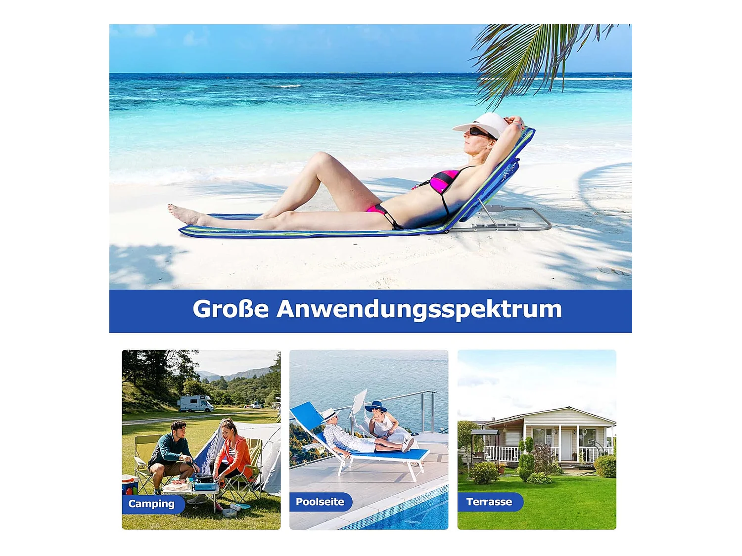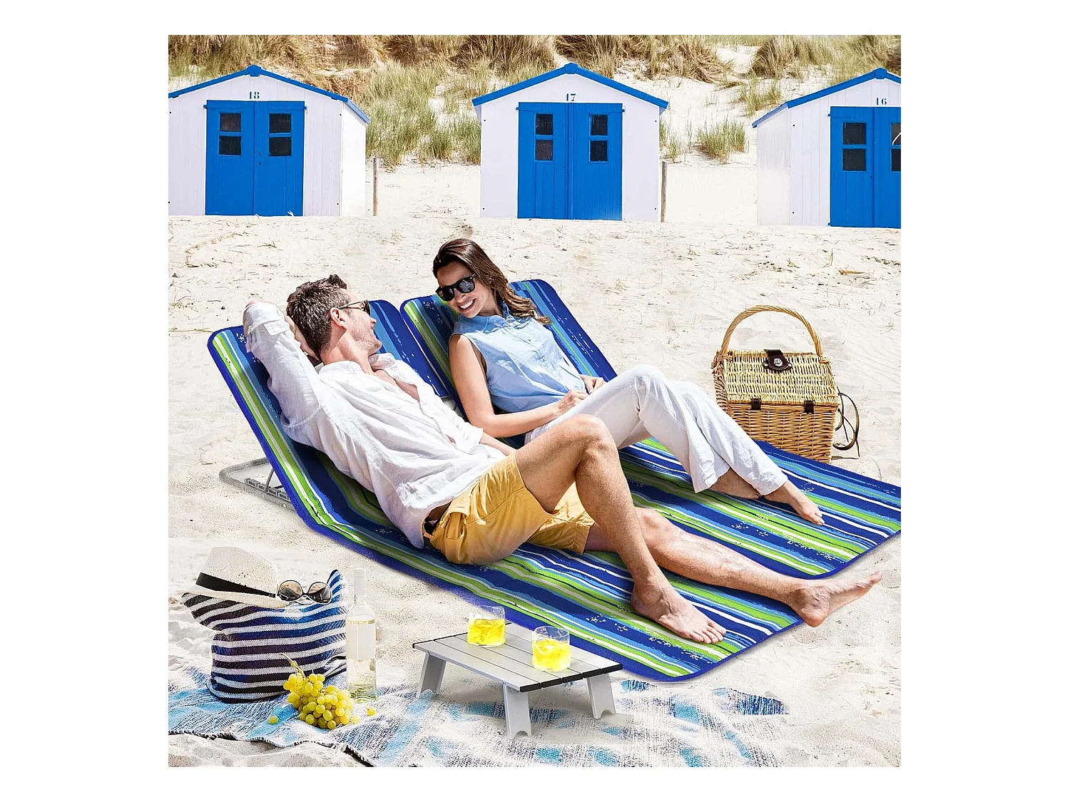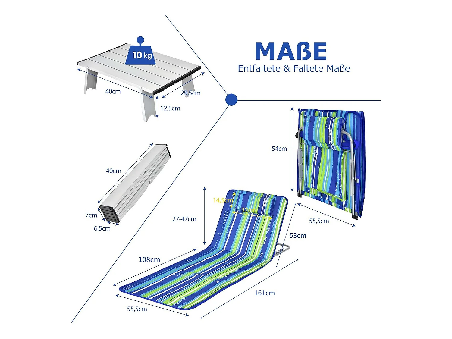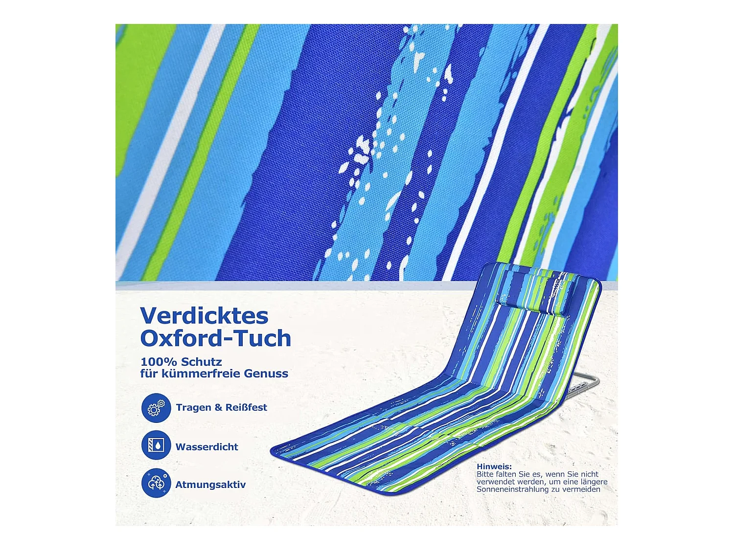 Set van 2 strandmatten met bijzettafel, hoofdkussen en opbergvak, ligmat, opvouwbare zonmat, licht, draagbaar, strandstoel voor het strand (groen) ZB32435
