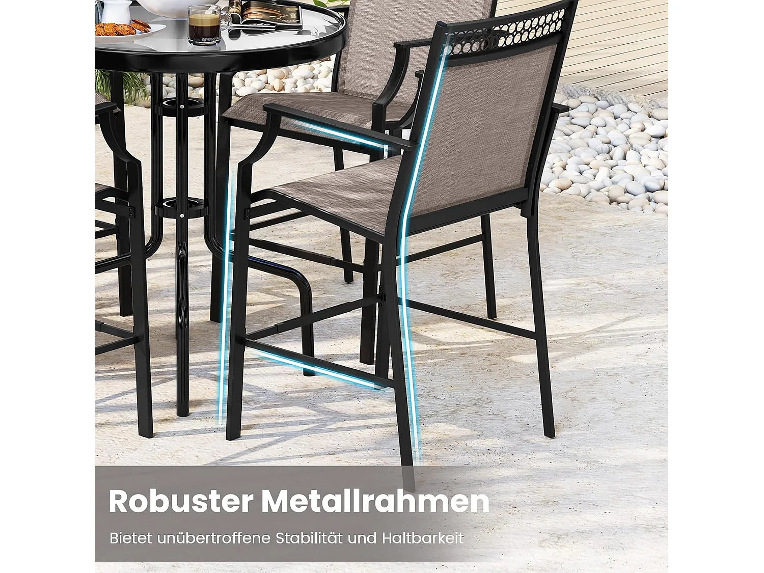 Set van 2 tuinstoelen, hoge terrasstoelen, balkonstoelen met sneldrogende stof en metalen frame, outdoorstoelen, voor tuin, balkon, zwembad (koffie)ZB33852