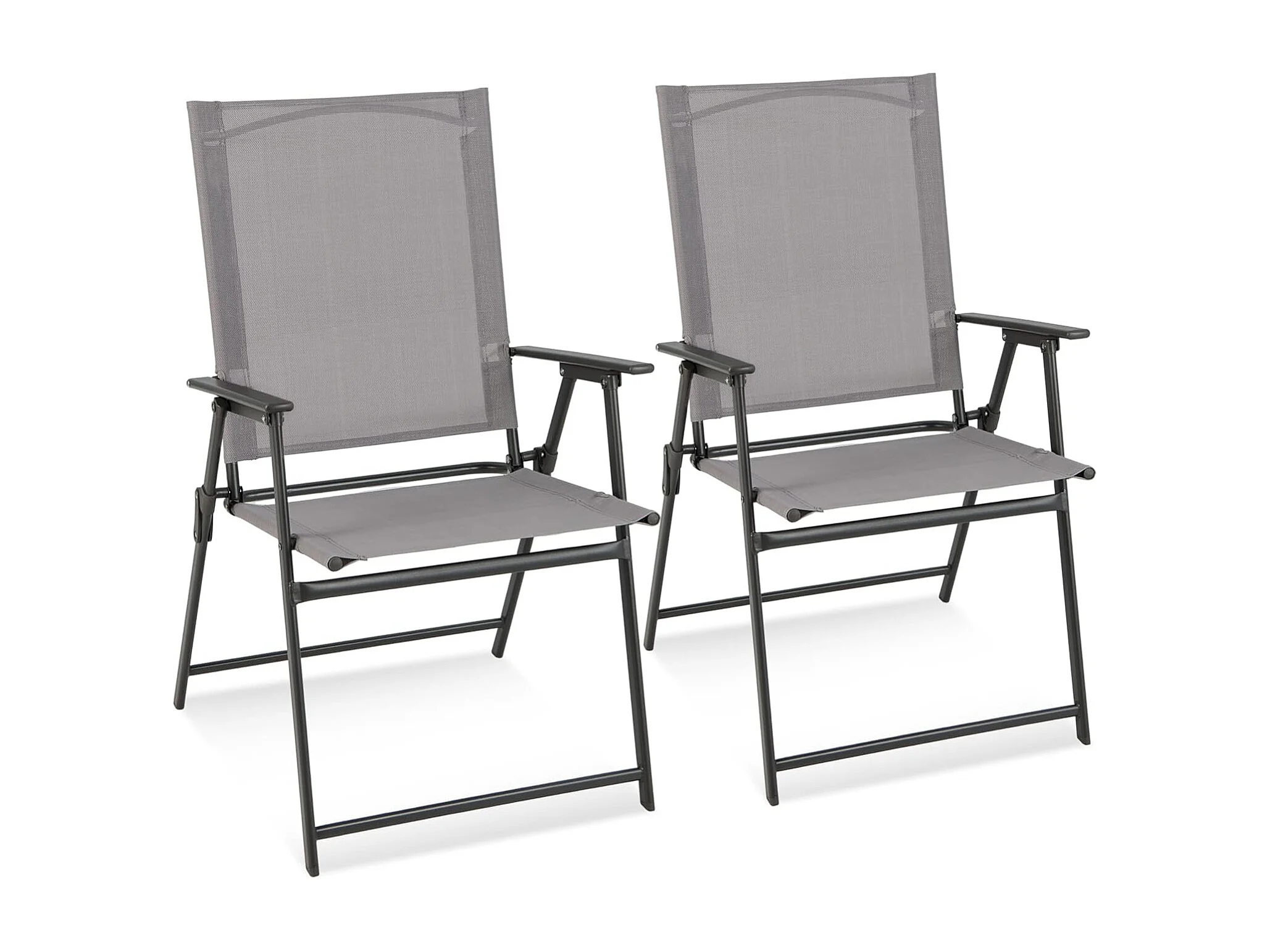 Set van 2 tuinstoelen, klapstoelen met armleuningen, balkonstoelen met ademende stof, terrasstoelen voor tuin, achtertuin, balkon ZB33210