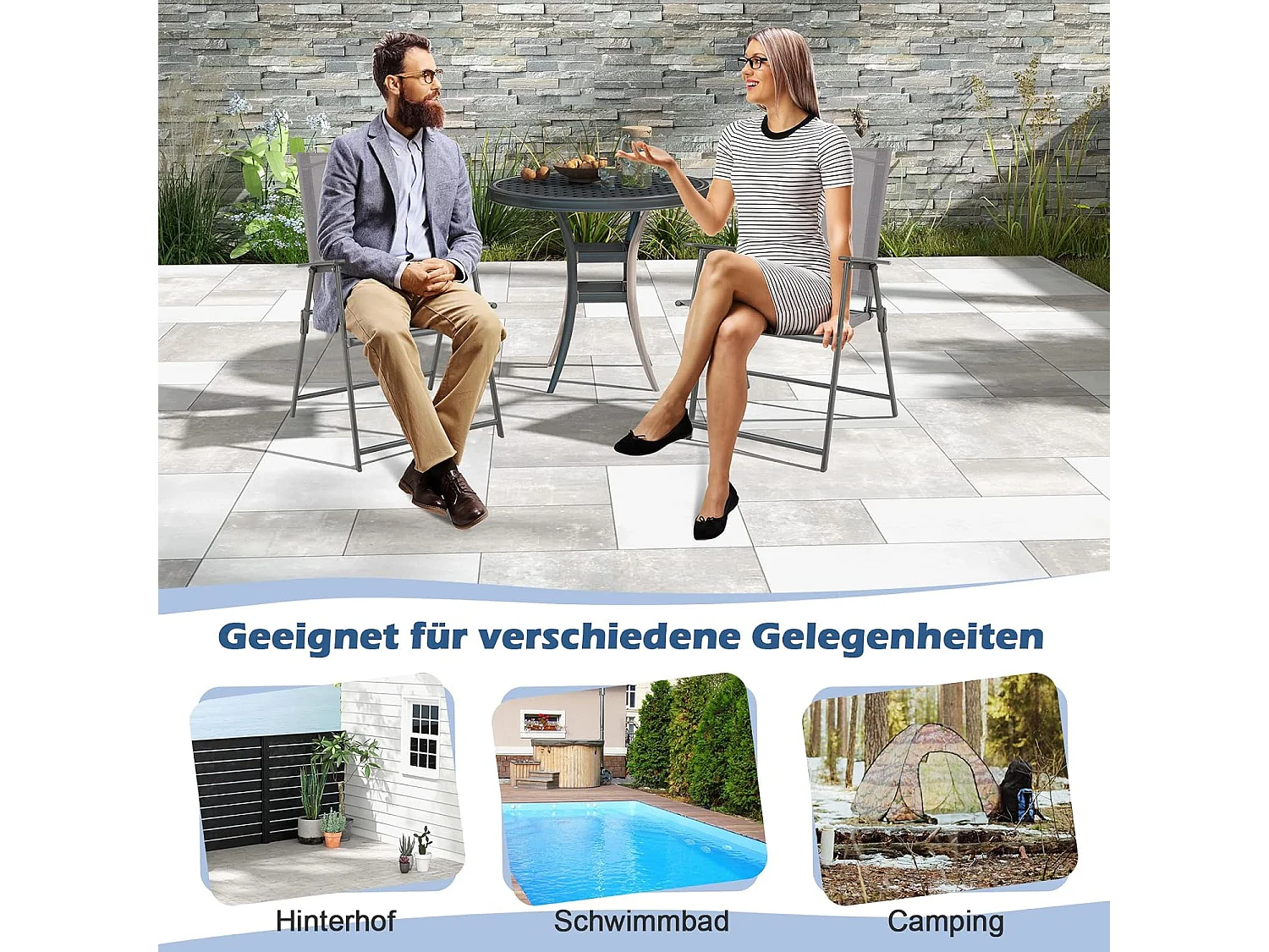 Set van 2 tuinstoelen, terrasstoelen, balkonstoelen met ademende zitting, outdoorstoelen tot 150 kg belastbaar, voor tuin, balkon, zwembad (grijs)ZB33582