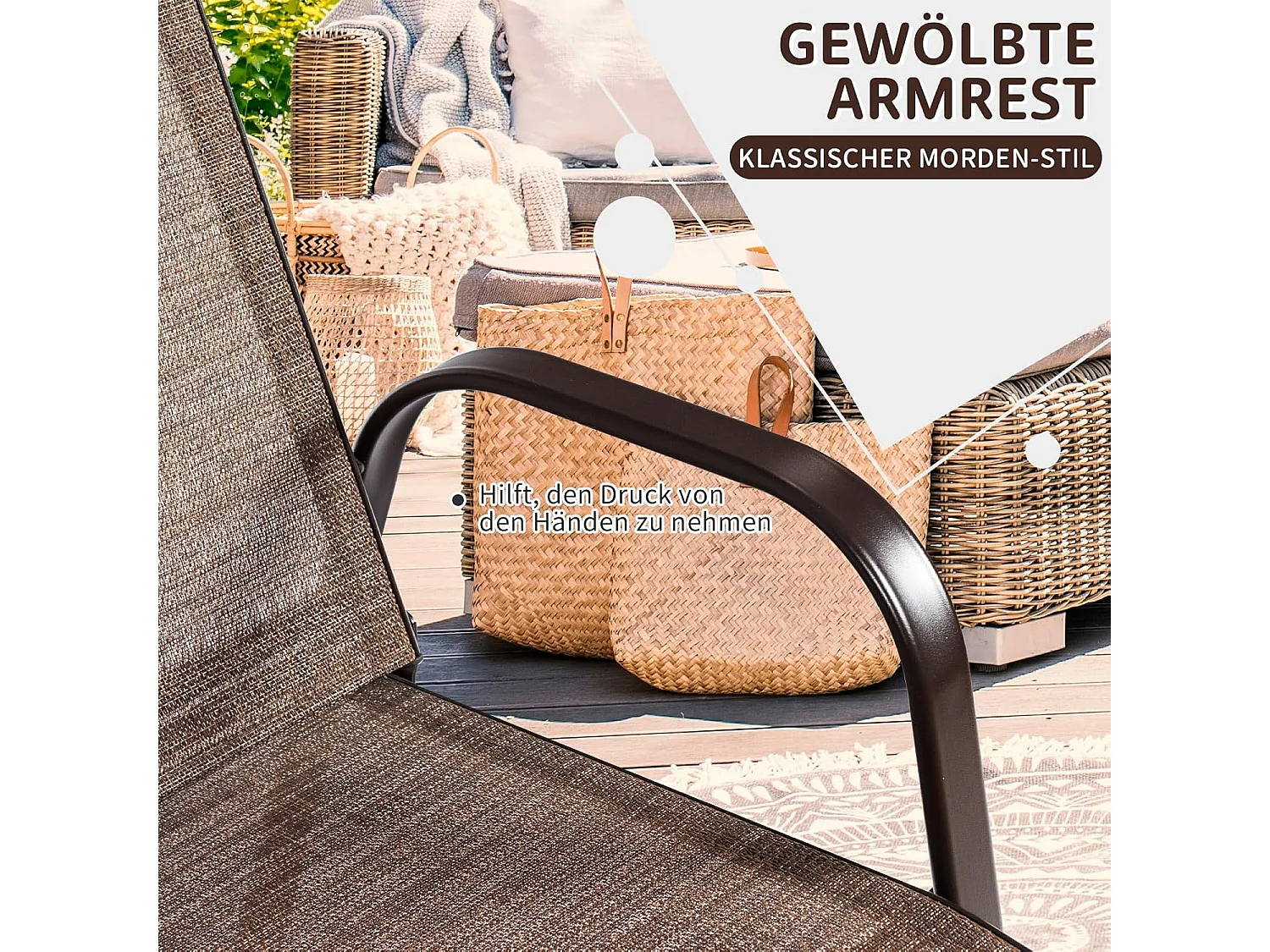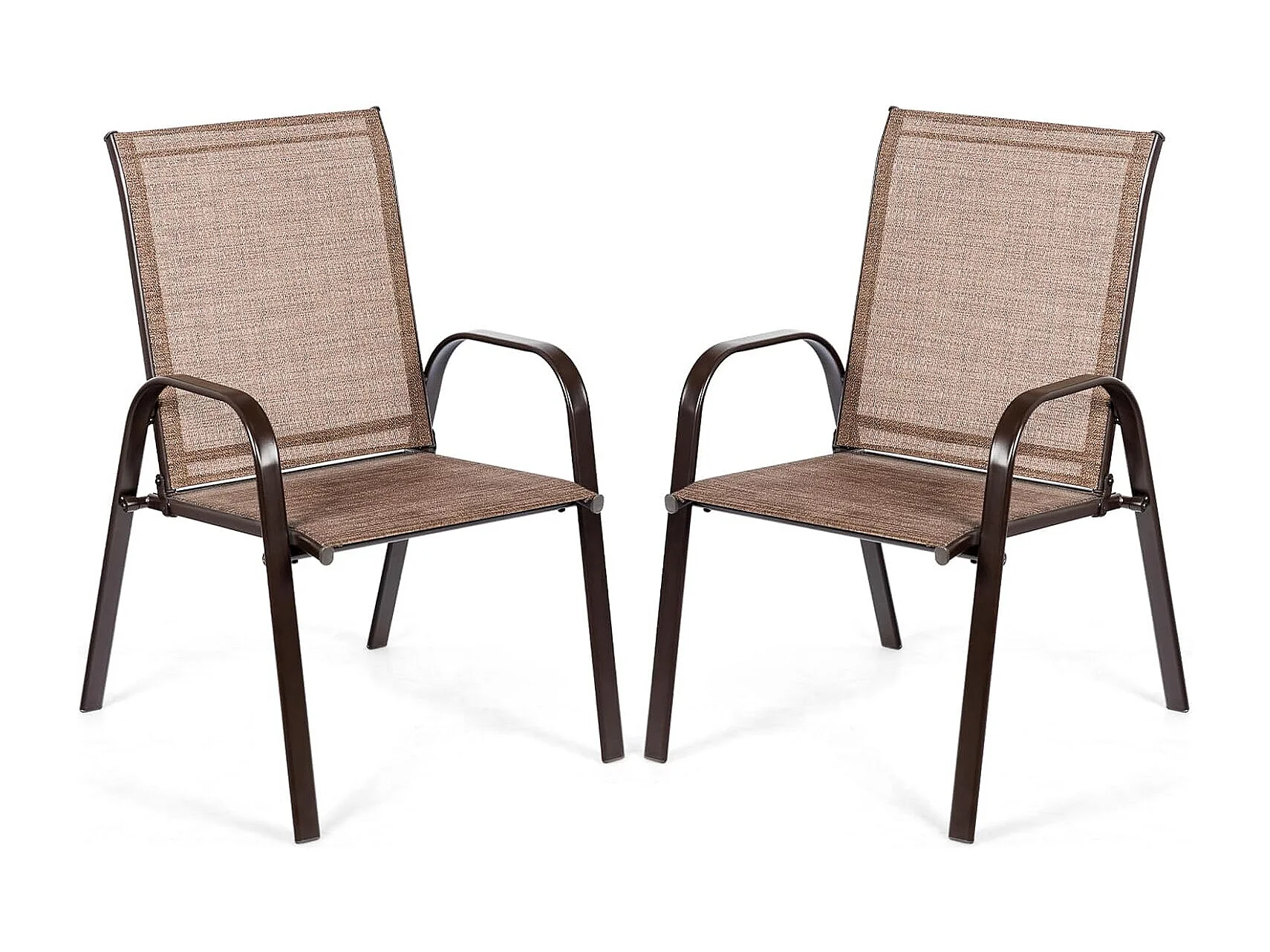 Set van 2 tuinstoelen met armleuningen,terrasstoelen van textiel en metalen frame,balkonstoelen tot 200 kg belastbaar,balkon,zwembad, 56 x 72 x 90 cm, bruinTI85852