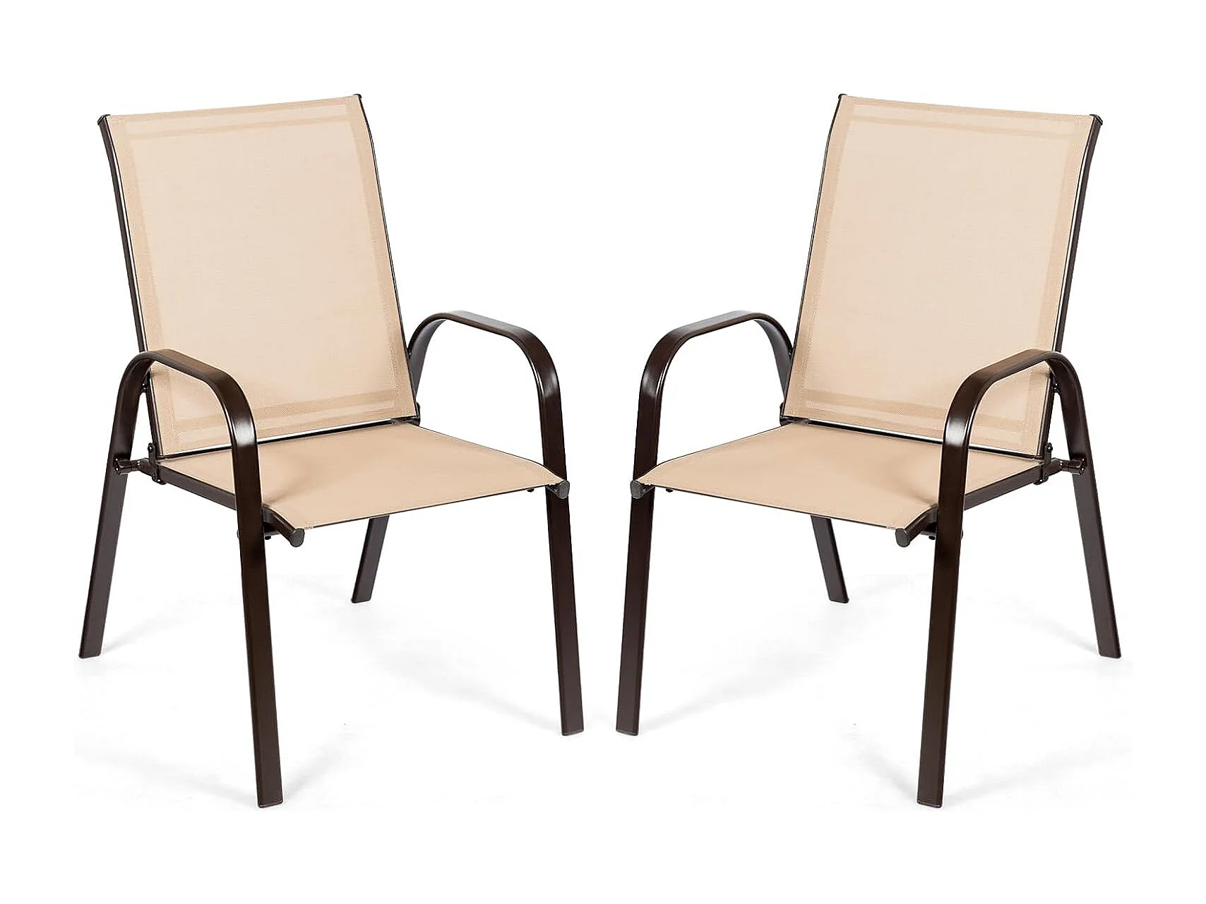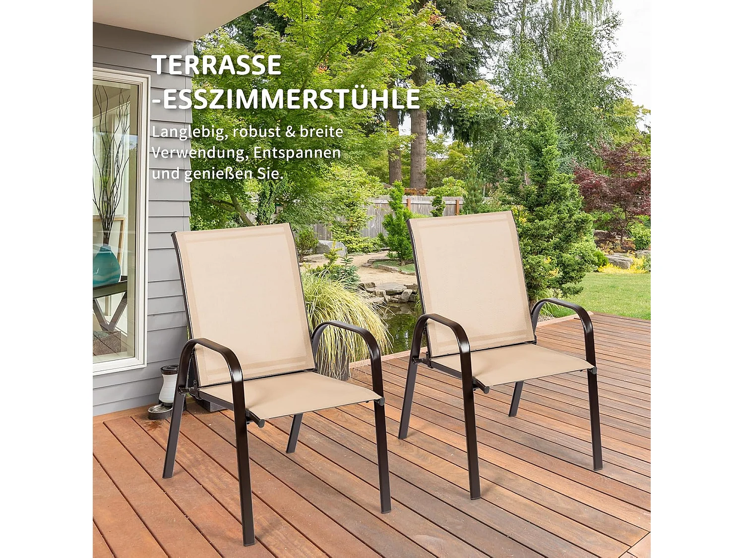 Set van 2 tuinstoelen met armleuningen, terrasstoelen van textiel en metalen frame, balkonstoelen tot 200 kg belastbaar,zwembad, 56 x 72 x 90 cm(beige)TI85852
