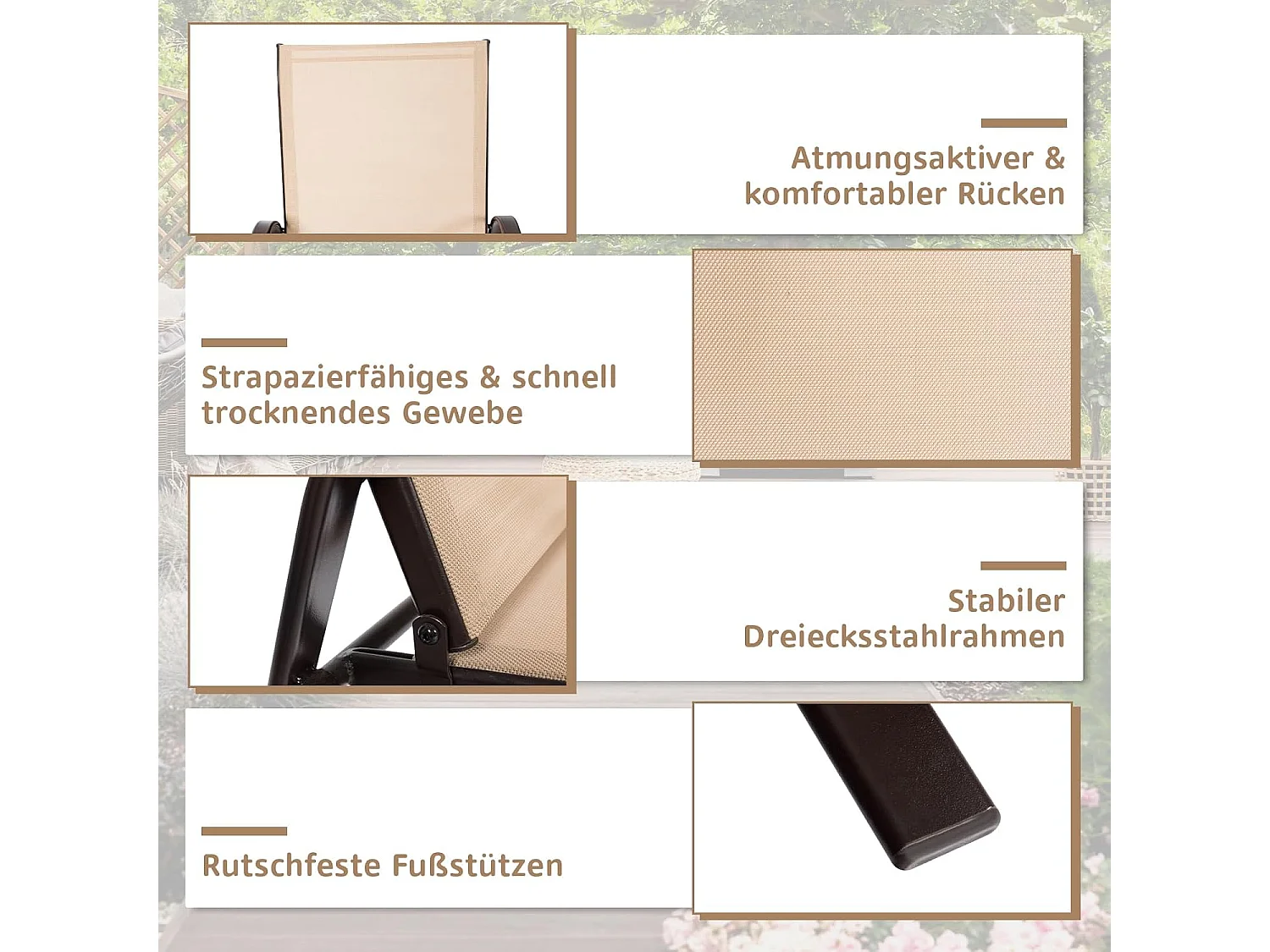 Set van 2 tuinstoelen, hoge klapstoelen met voetensteun,inklapbare barkrukken tot 150 kg belastbaar, balkonstoelen voor balkon, tuin, zwembad ZB33564