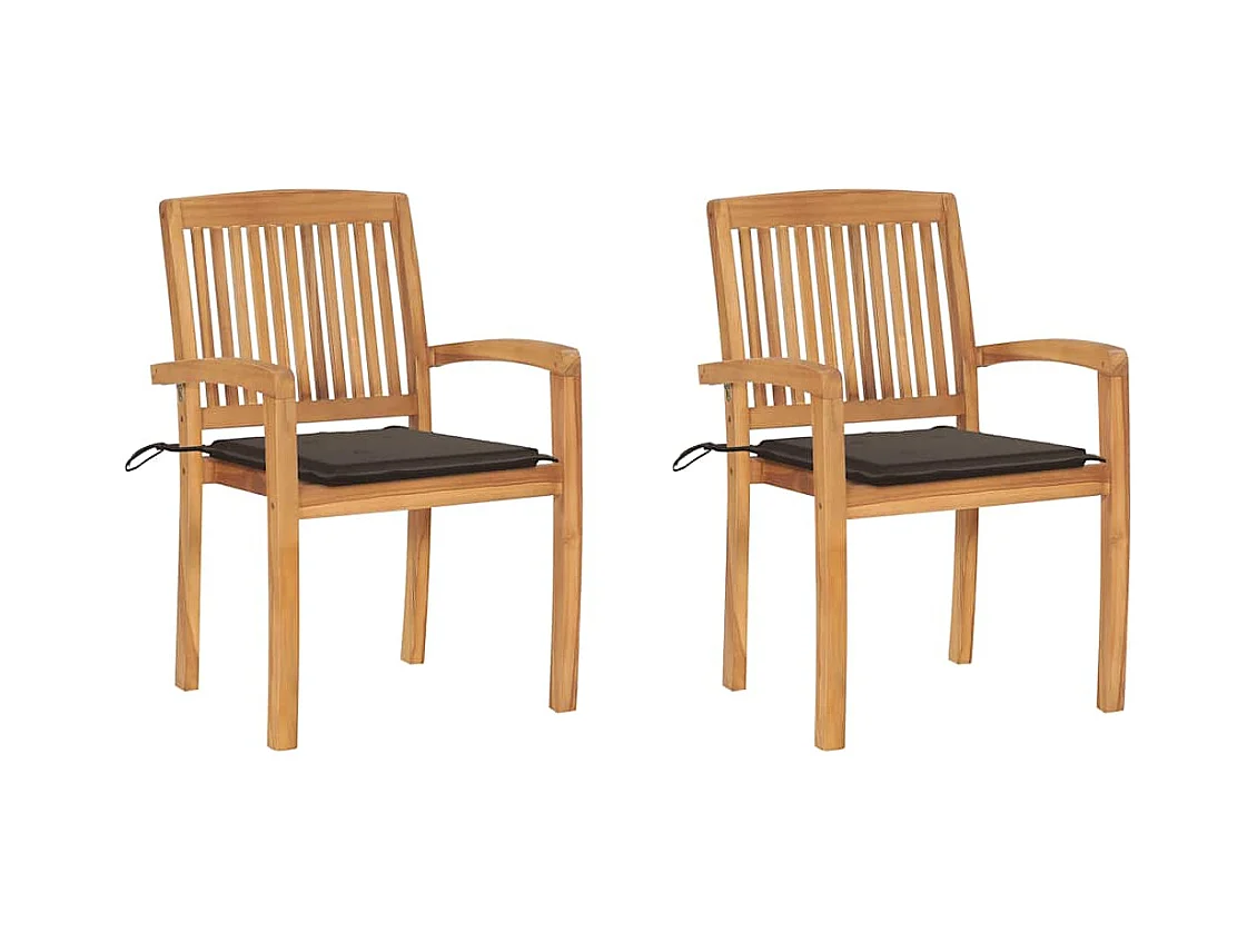 Tuinstoelen set van 2 en grijze kussens Massief teakhout