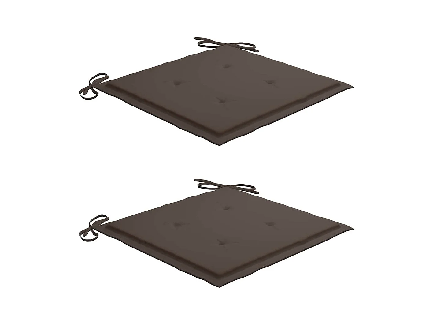 Set van 2 tuinstoelen met taupe kussens. Massief teakhout.