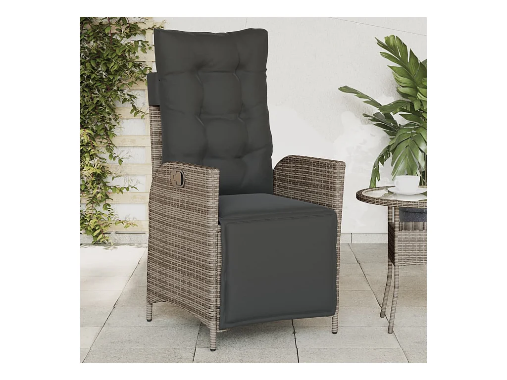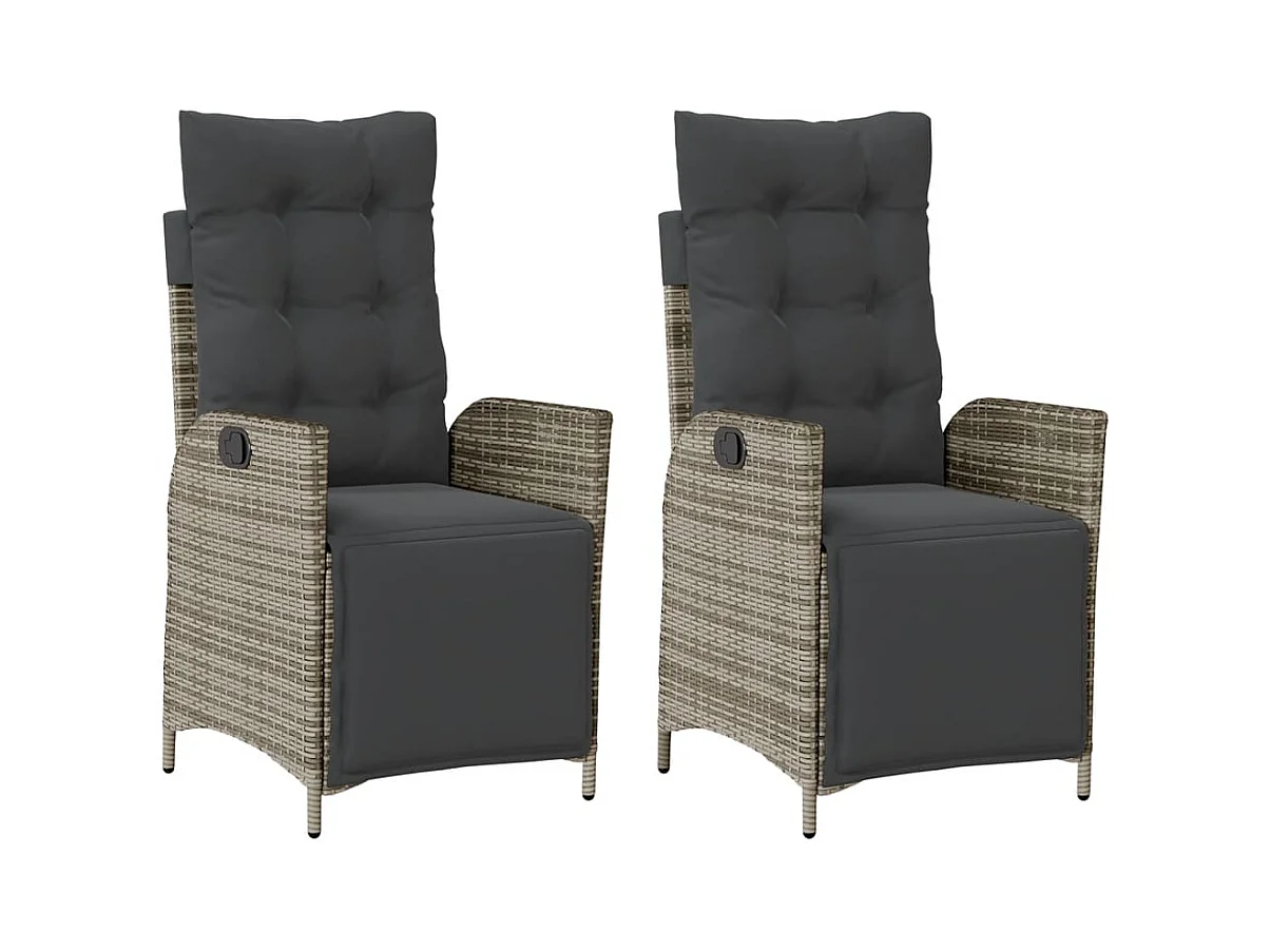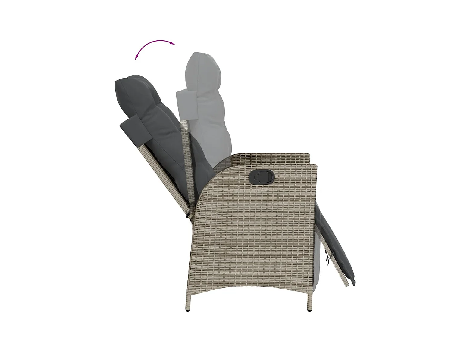 Set van 2 verstelbare tuinstoelen en rotan voetenbankje