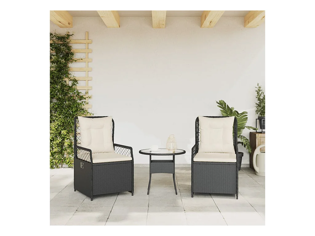 Set van 2 verstelbare tuinstoelen met zwarte rotan kussens