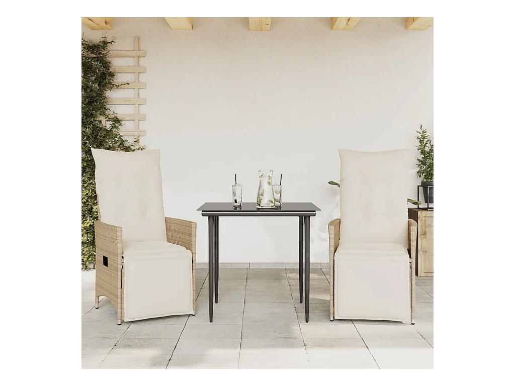 Set van 2 verstelbare tuinstoelen met beige rotan kussens