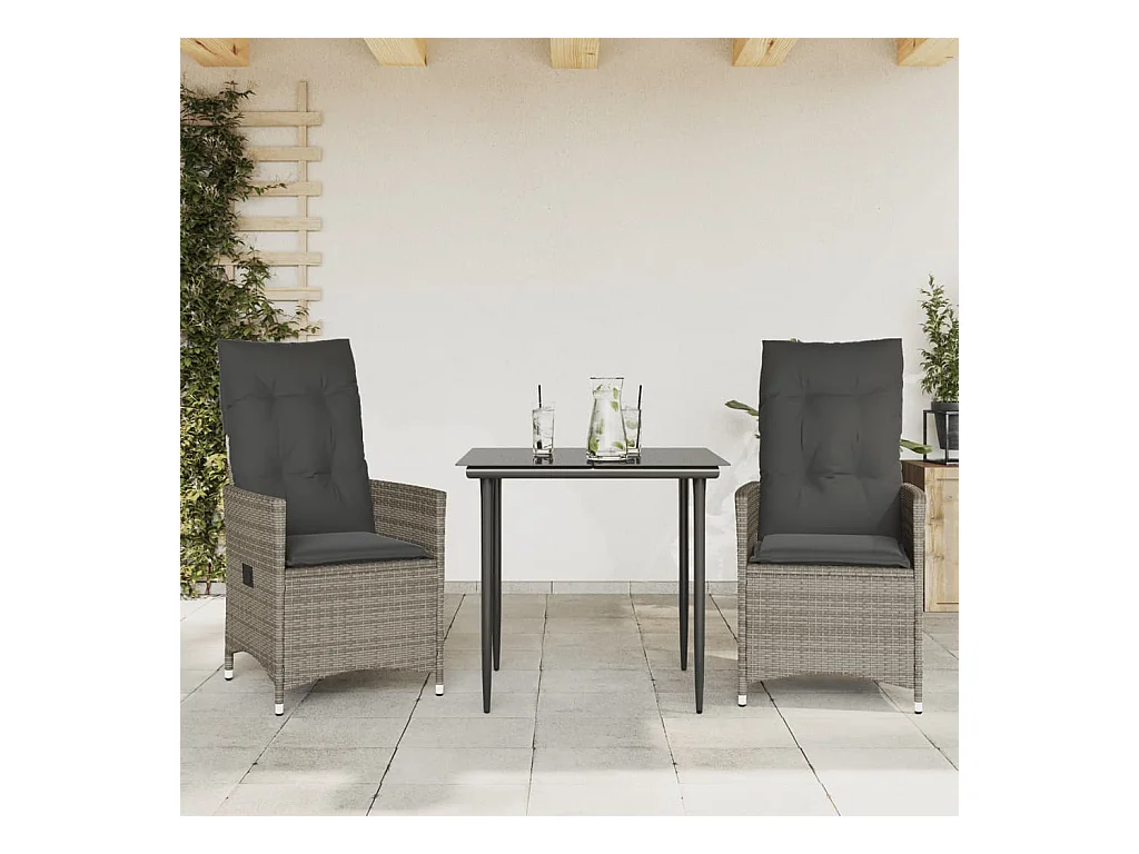Set van 2 verstelbare tuinstoelen met grijze rotan kussens