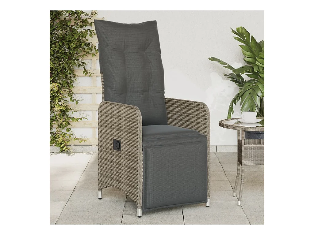 Set van 2 verstelbare tuinstoelen met grijze rotan kussens