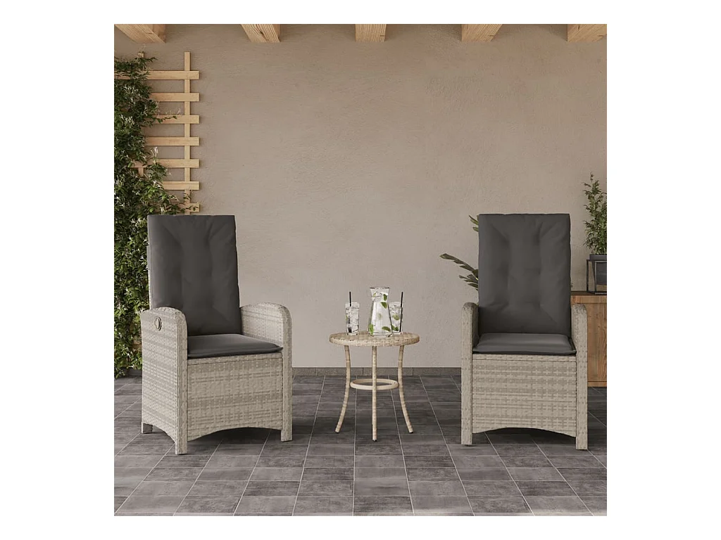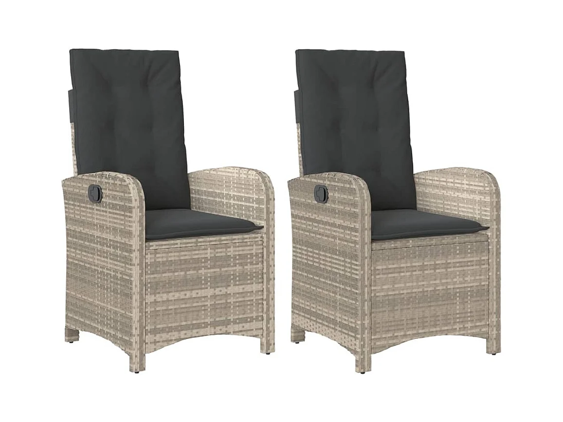 Set van 2 verstelbare tuinstoelen met grijze rotan kussens