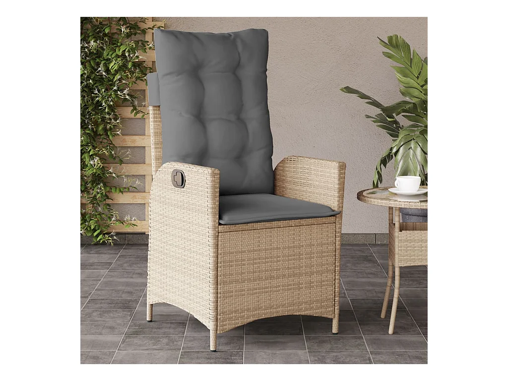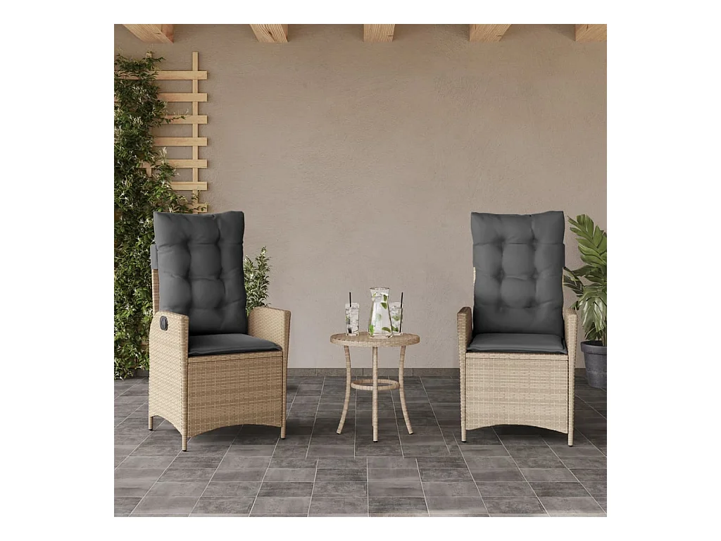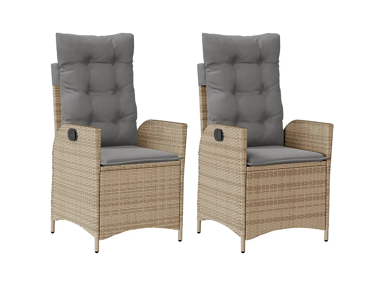 Set van 2 verstelbare tuinstoelen met kussens van gevlochten hars