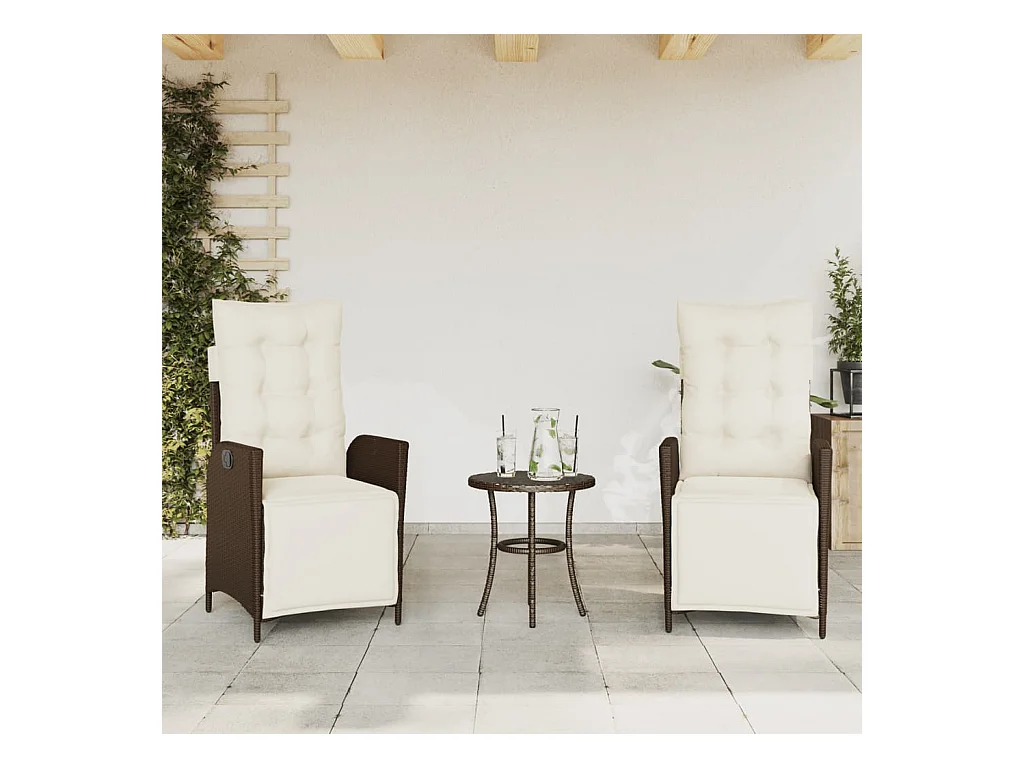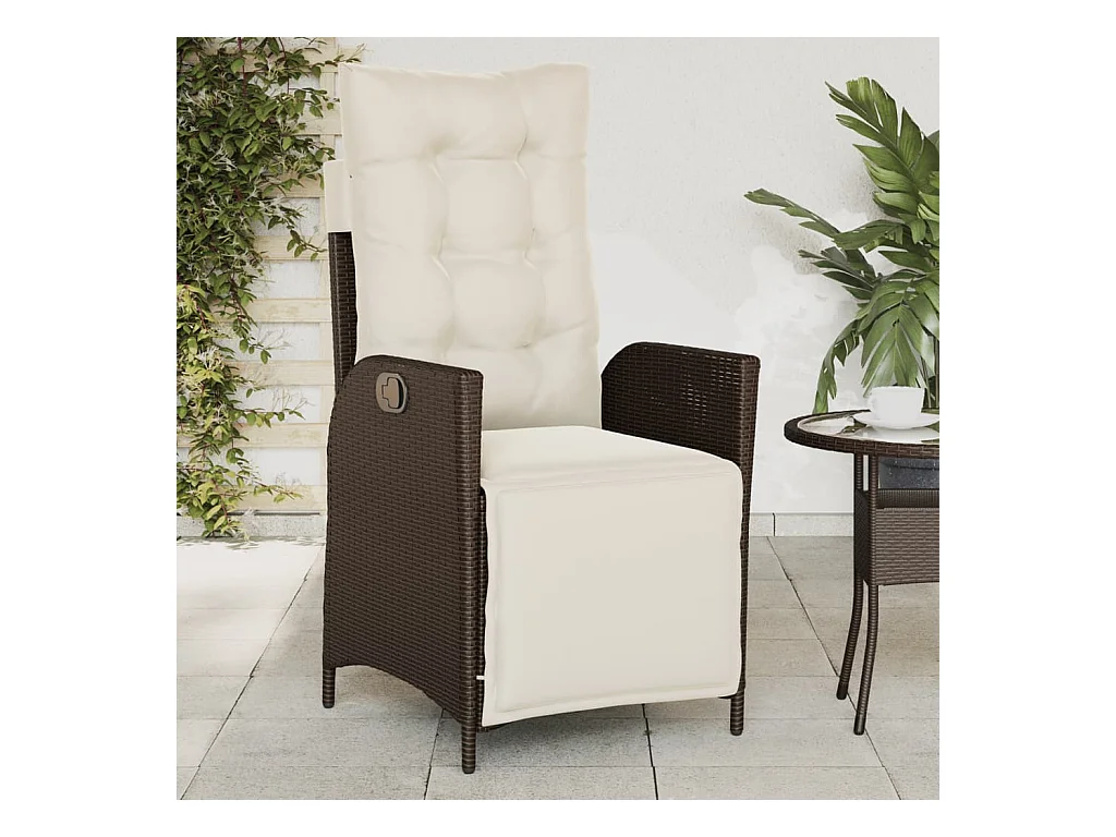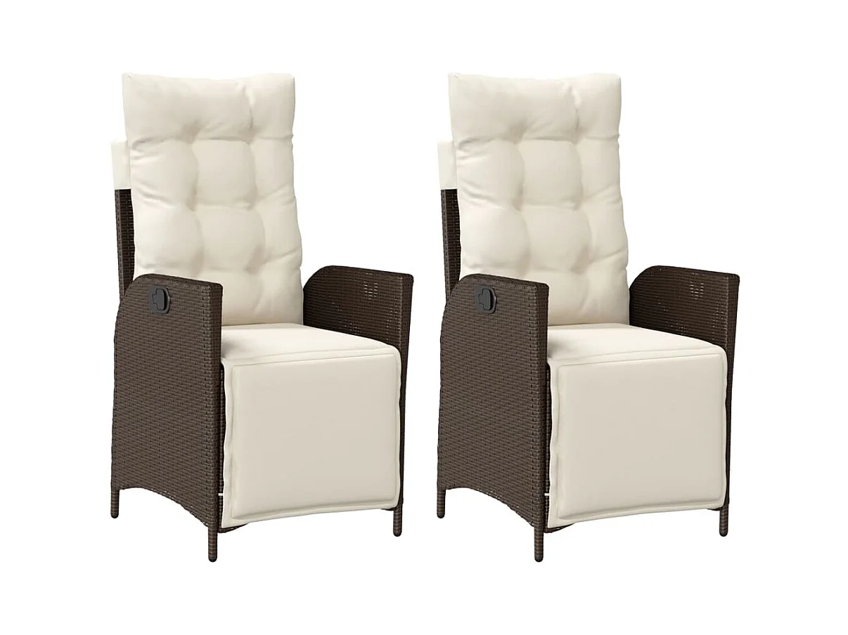 Set van 2 verstelbare tuinstoelen met rotan voetenbankje