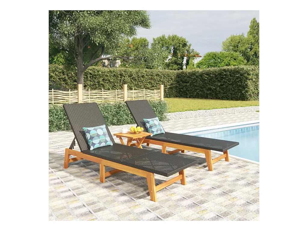 Ligstoelen met tafel 3 stuks Zwart en antraciet 197 x 54 x 86 cm