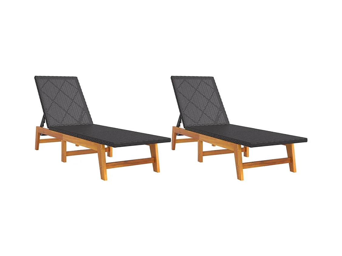 Set van 2 zwart/bruine loungestoelen van geweven hars/acaciahout