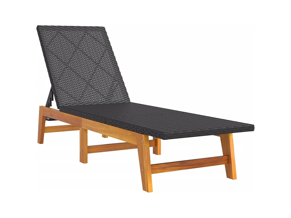 Chaise longue met kussen van kunstharsriet/massief acaciahout