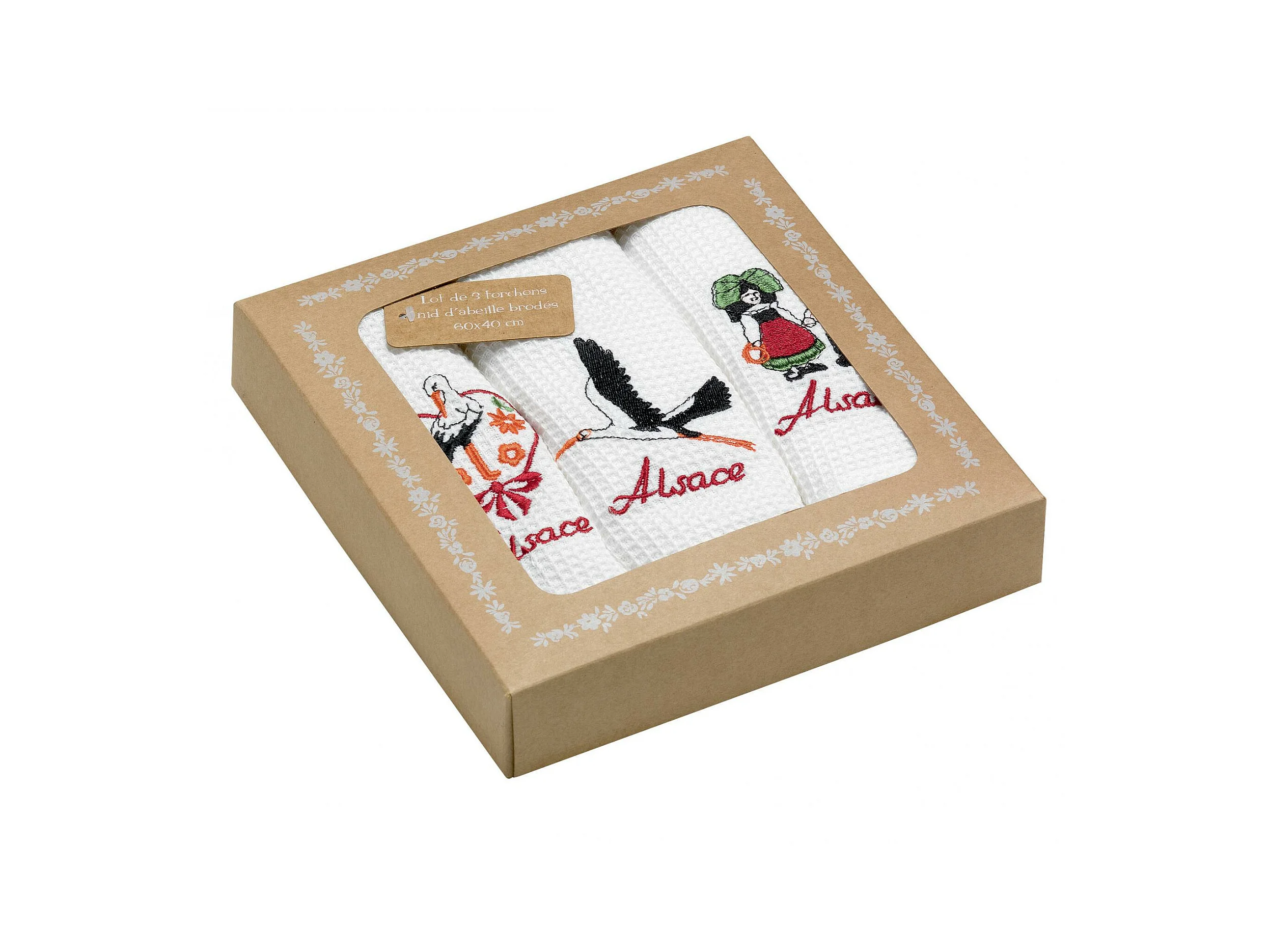 Set van 3 theedoeken in wafelstructuur Broderie Alsace