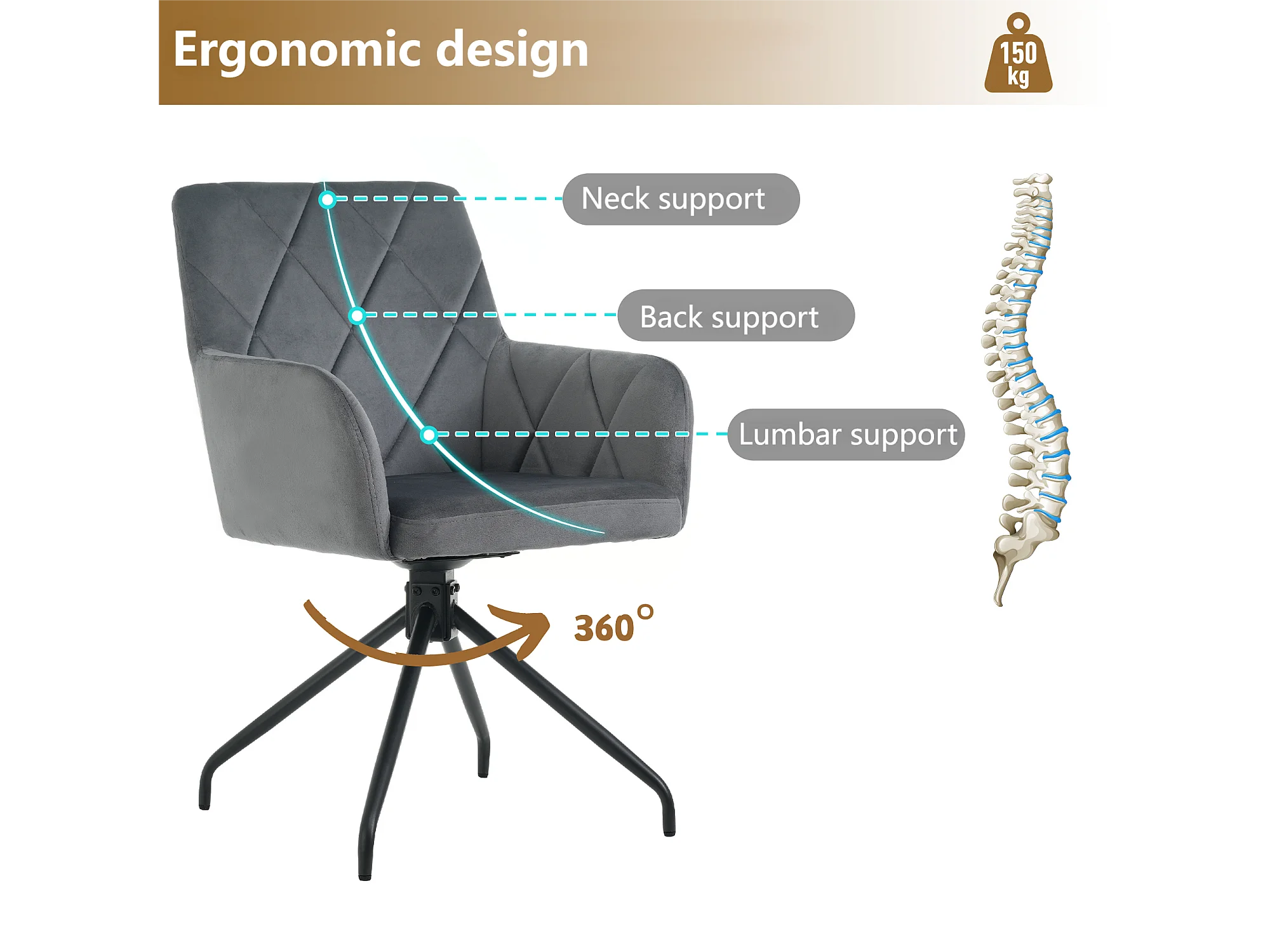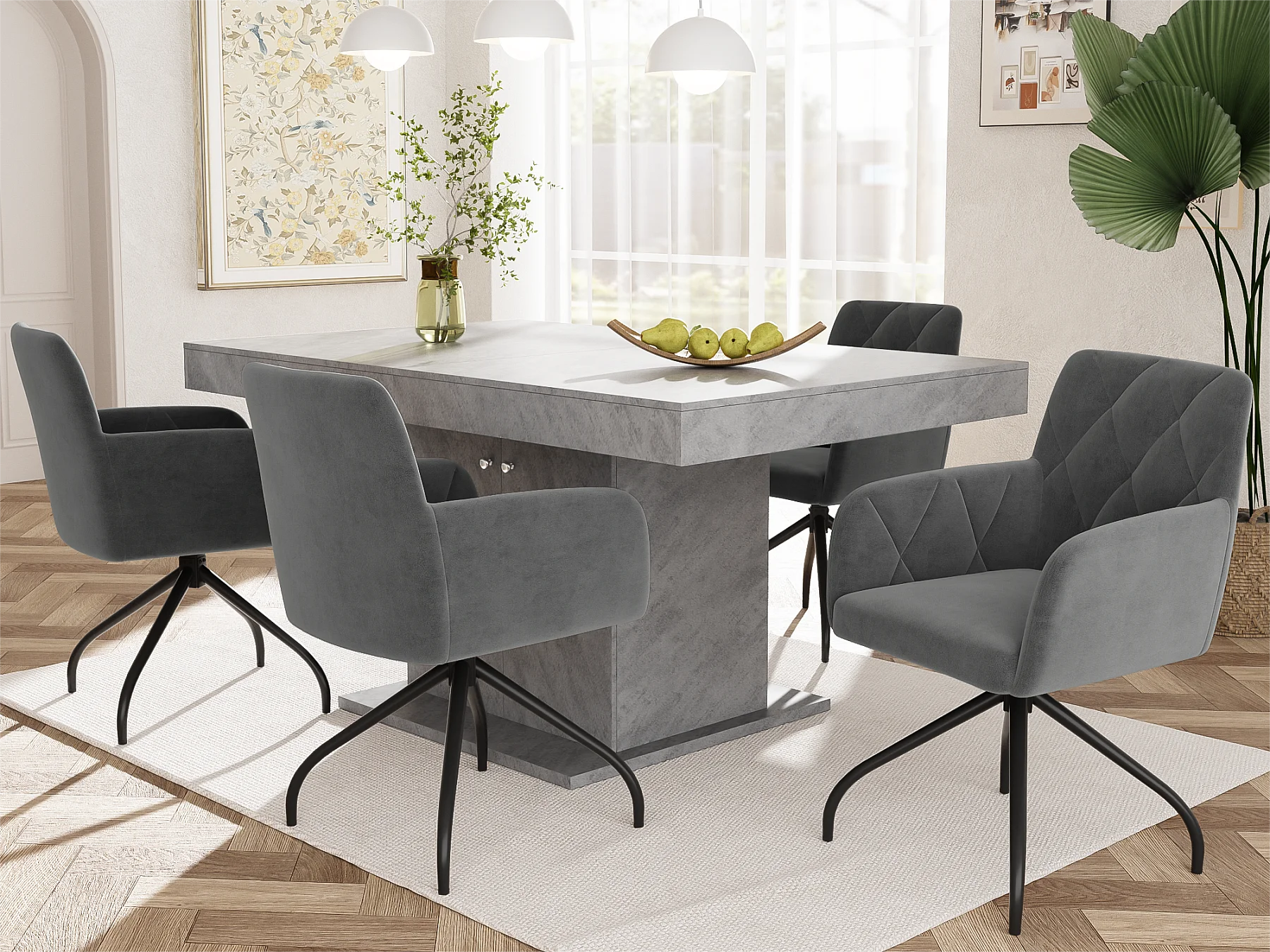 Set van 4 360° draaibare stoelen - fluwelen stof - rugleuning ruitpatroon - Zwart