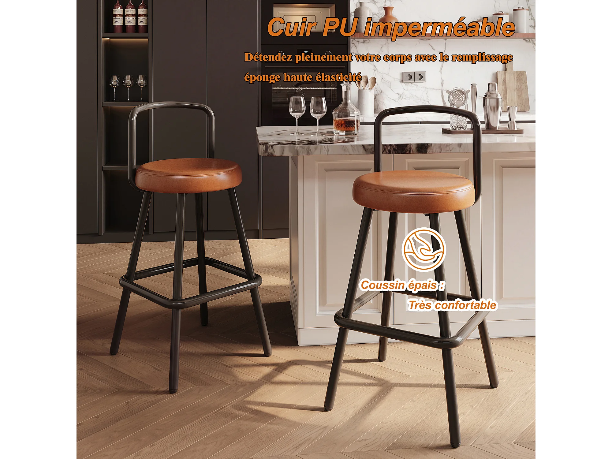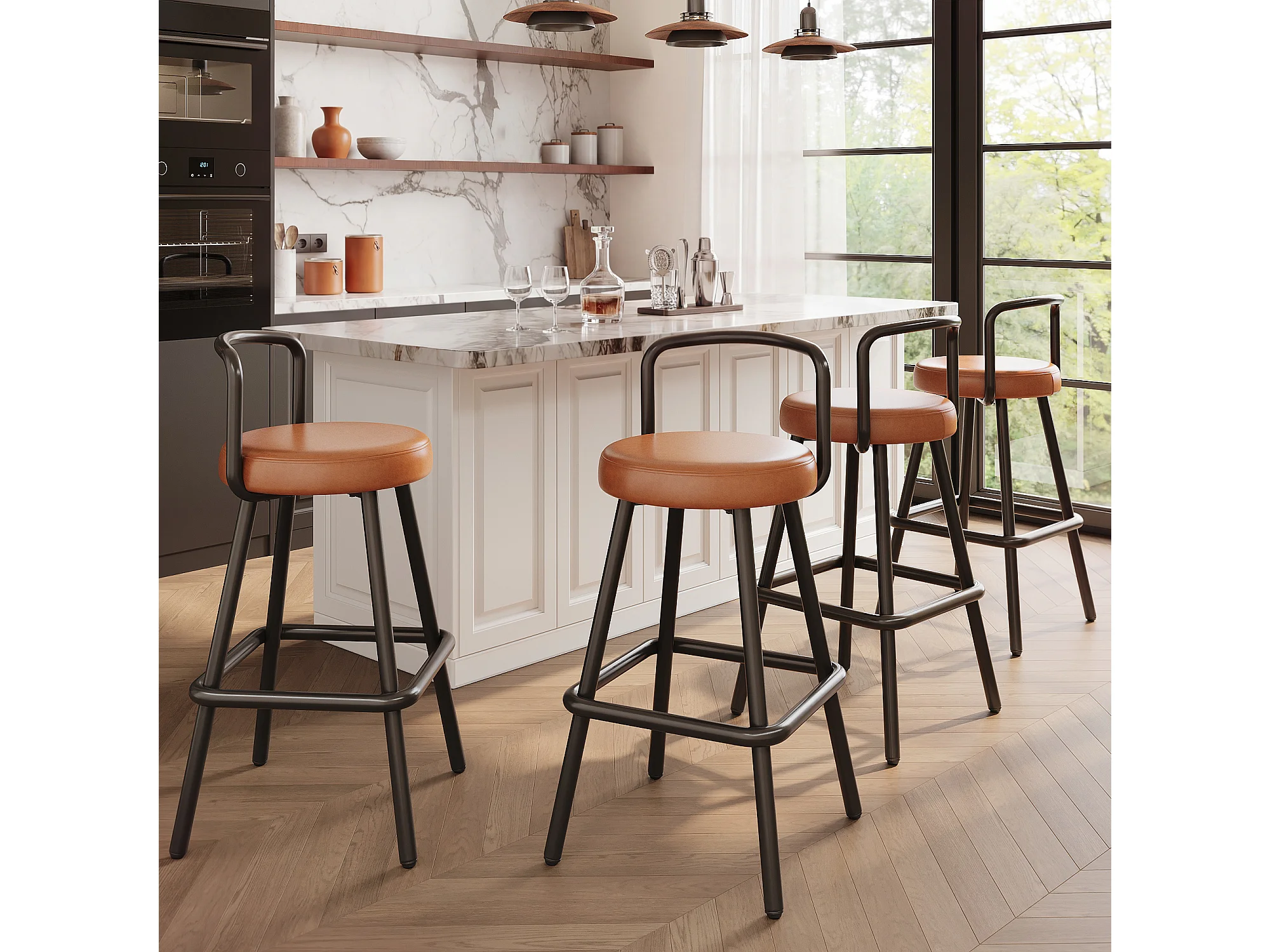 Set van 4 barkrukken met metalen poten - Bruin PU-leer